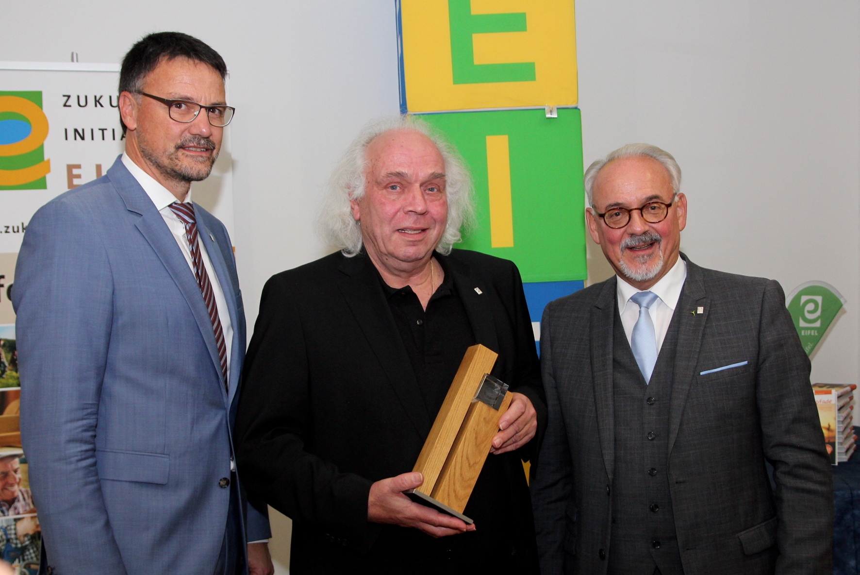 Auch in Sachen Literatur ist der Kaller umtriebig. Er war einer der Mitgründer des Festivals »Lit.Eifel«, das seit 2013 zu Lesungen im nordrhein-westfälischen Teil der Eifel und in der Deutschsprachigen Gemeinschaft Belgiens einlädt und laut Etschenberg ein »sensationeller Erfolg« ist. In seiner Heimatgemeinde Kall engagiert sich der Preisträger außerdem als Vorstandsvorsitzender im Kuratorium der Stiftung Kloster Steinfeld für den Erhalt des Salvatorianer-Klosters und des dazugehörigen Hermann-Josef-Kolleg. »Helmut Lanio ist ein wertvoller Impulsgeber, ein wahrer Botschafter der Eifel-Region und der Beweis, was Überzeugung, Engagement und Zielstrebigkeit bewirken können«, betonte Helmut Etschenberg. »Ich freue mich für Helmut Lanio, diese Auszeichnung hat er absolut verdient. Er hat sich immer für die Eifel stark gemacht, vor allem in sozialen, kulturellen und schulischen Bereichen. Ganz klar: Wenn man über die Eifel spricht, dann kommt man an Helmut Lanio nicht vorbei. Dafür gebührt ihm großer Dank und ebenso große Anerkennung«, teilte Landrat Günter Rosenke mit.Weitere Preisträger