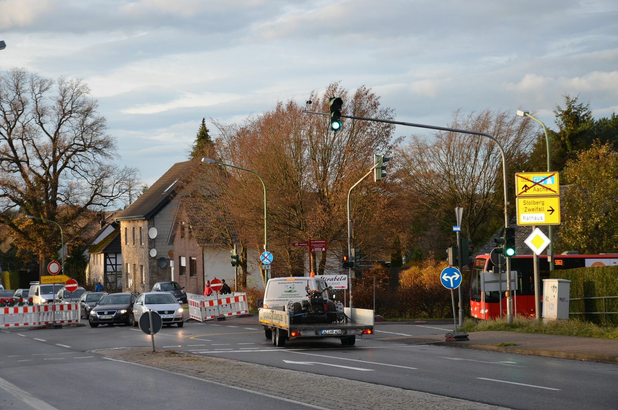 »Wir wollten die notwendige Baumaßnahme so schnell wie möglich durchführen«, erläutert Jorma Klauss das ursprüngliche Ansinnen. Die Erneuerung von Hausanschlüssen entlang der Bundesstraße zwischen Haupt- und Rosentalstraße sollte bis Weihnachten abgeschlossen sein. »Die Umleitung durch den Ortskern ist jedoch untragbar«, lenkte nun Städteregionsrat Helmut Etschenberg ein. Die Blechlawinen vorbei an zwei Schulen, an einem Wochenmarkt und bald auch am Weihnachtsmarkt vorbei zu führen, sei nicht vertretbar. Daher wird die Baustelle ab kommenden Montag, 28. November, von aktuell 200 Meter auf etwa 50 Meter reduziert. »Dann ist eine Ampelschaltung möglich«, unterstreicht Klauss. Generell will man die Grünphasen verlängern, um ständiges Umschalten zu verhindern - was Stillstand von beiden Seiten bedeutet. Morgens werden die Pendler aus der Eifel länger grün bekommen, abends der Verkehr aus der Kaiserstadt kommend.