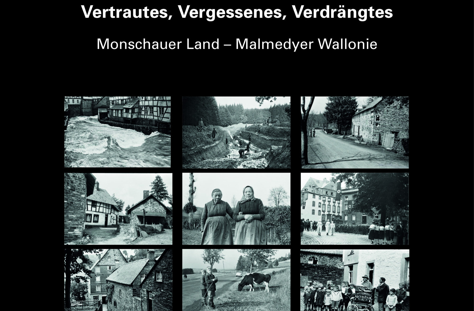 Das Buch »Vertrautes, Vergessenes, Verdrängtes. Monschauer Land – Malmedyer Wallonie« zeigt auf über 400 Seiten mehr als 200 historische Abbildungen aus der Stadt Monschau, dem Monschauer Land und der Region um Malmedy/St. Vith. Die Fotos entstanden in den 1920er bis 1940er Jahren. Sie dokumentieren den kleinstädtischen Alltag der Menschen in Monschau, aber auch die harte Arbeitswelt auf dem Lande, zeigen die Menschen bei ihren Tätigkeiten zu Hause und auf dem Feld oder bei Freizeitvergnügungen, aber auch gravierende Landschaftsveränderungen durch Bautätigkeiten. Besonders interessant sind jedoch die bisher nicht veröffentlichten Fotos aus der Zeit des Nationalsozialismus, die den Einfluss des Regimes auf den Alltag der Menschen zeigen. So strömen auf den im weihnachtlichen Lichterglanz erstrahlenden Marktplatz in Monschau fast gleichzeitig aufmarschierende Parteifunktionäre der NSDAP oder ein prominentes Haus in der Kirchstraße zeigt sich im Festtagsschmuck anlässlich des bischöflichen Besuches und wenig später huldigt es dem »Führer« mit dessen Fahne. Georg Güttsches hat durchaus mit unverhohlener Sympathie und Aufbruchsstimmung zahlreiche Auftritte der politischen Propaganda begleitet, wie viele Fotos mit Motiven von politischen Auftritten aus den 1930/40er Jahren in seinem Nachlass zeigen. Dennoch ist die neue Publikation auch ein wichtiges Dokument des ganz normalen Alltags der Menschen in der Nord-eifel kurz vor dem Zweiten Weltkrieg.