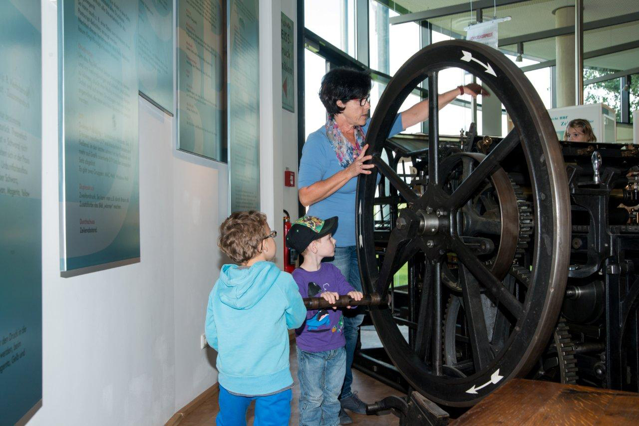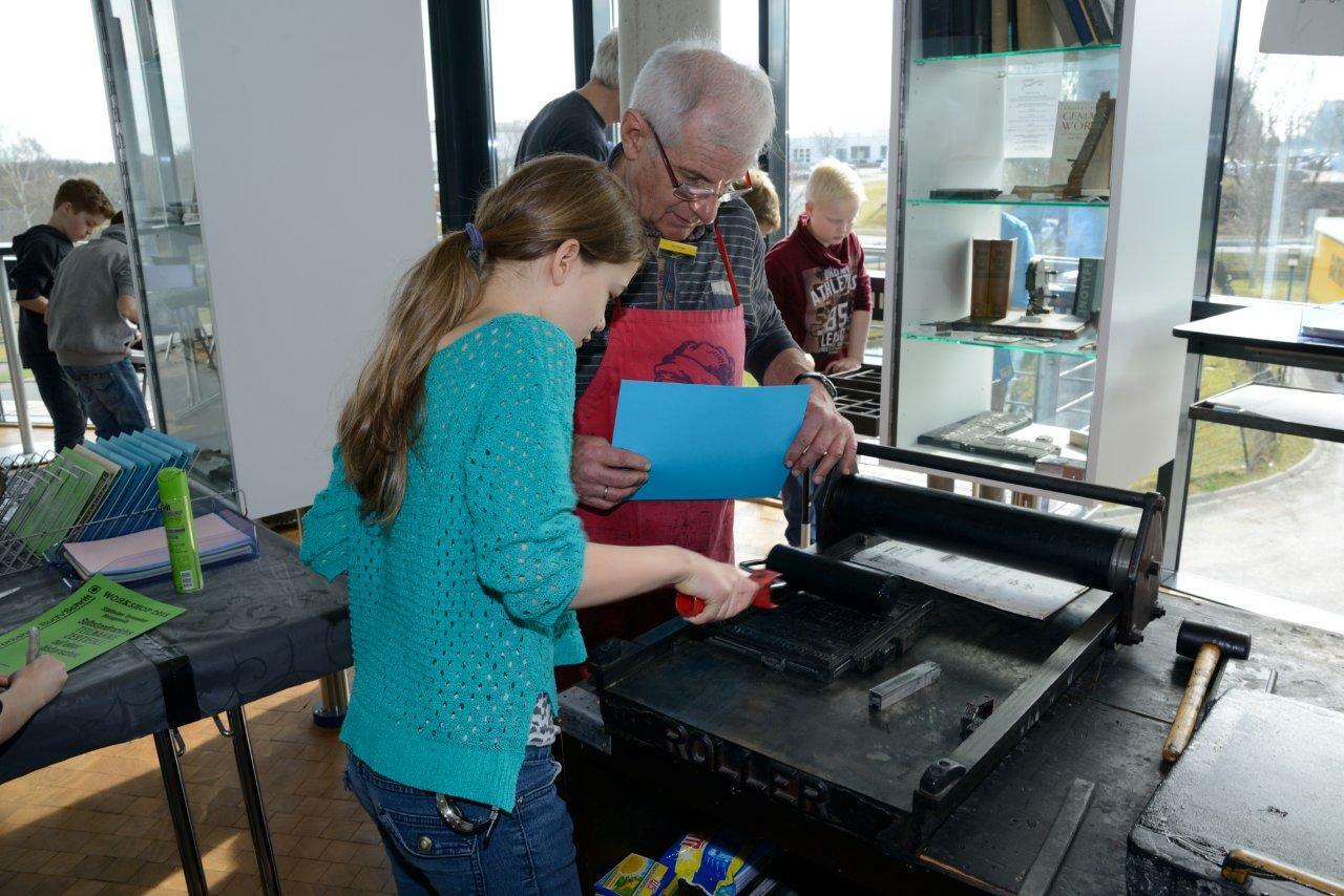 Welche Bedeutung hat die Erfindung des Buchdrucks für die Menschen? Wie entsteht ein Buch oder eine Zeitung? Und was ist eigentlich ein »Schusterjunge«? Antworten auf diese Fragen und noch viel mehr gibt es im Druckereimuseum Weiss. Besonders gerne bietet Karin Breuer den Workshop »Wie entsteht ein Buch« an. Zunächst geht es um die Entwicklung der Schrift und des beschreibbaren Materials. Dann können die jungen Teilnehmer bei Setzermeister und Museumsleiter Kurt Förster hautnah miterleben, wie eine Zeile oder ein Satz für ein Buch oder eine Zeitung entsteht. »Wir orientieren uns dabei immer an der Altersstruktur der Workshop-Gruppe - die Kleinen versuchen sich am Kartoffeldruck, Größere hingegen sehen bei Flachdruck wie sich Fett und Wasser abstoßen und so die Farbe auf das Papier gelangt«, so Breuer.