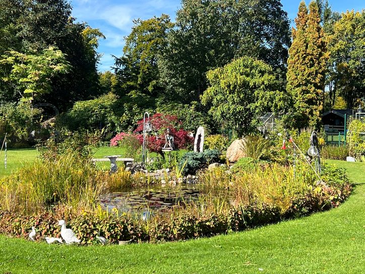 Nur zwei Straßen weiter findet man bereits die nächste Plakette von »Natur im Garten«. Hilde und Raymund Ibba haben diese Auszeichnung bekommen und jeder, der entlang des reetgedeckten Hauses streift - ein Schild weist auf den »offenen Garten« hin, sieht sofort, dass dieses Zertifikat unstrittig ist. Wilde Ecken wechseln mit einer Streuobstwiese, der Gemüsegarten ist von einem Blumenmeer umgeben. Eigene Bienenvölker sorgen für die Befruchtung der Obstbäume und anderer Pflanzen, während Coburger Fuchsschafe das Gras kurz halten. Besonders alte Sorten haben es dem Ehepaar angetan. Gartenabfälle werden auf dem weitläufigen Gelände kompostiert. »Das alles geht nur, wenn die ganze Familie mit anpackt«, unterstreicht Raymund Ibba und verweist auf seine Kinder und Enkel, die bei Pflege und Ernte, Aussaat und Rückschnitt helfen.