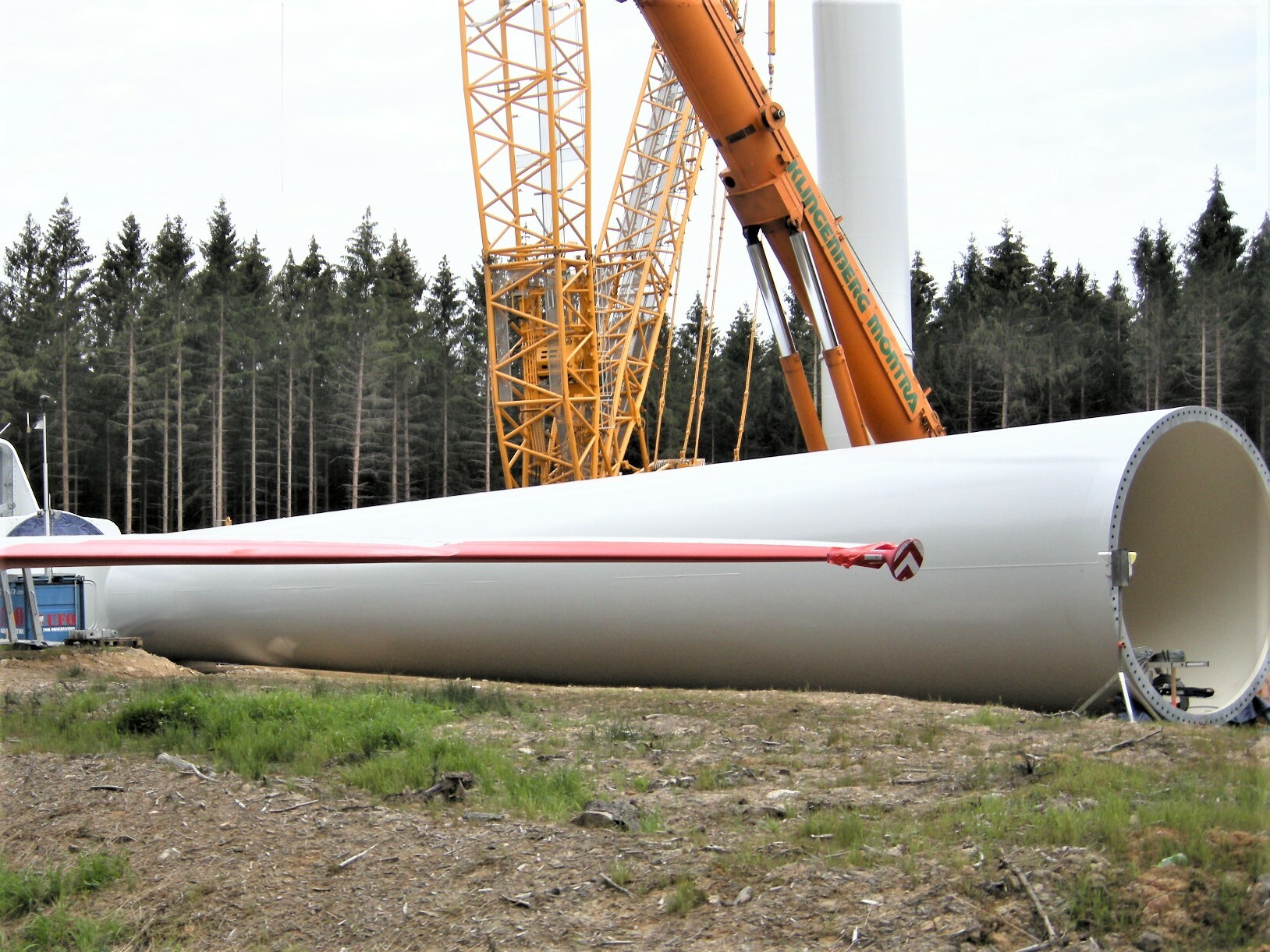 Westlich der Himmelsleiter genannten Bundesstraße 258 errichtet die STAWAG gemeinsam mit der Firma juwi fünf Windenergie-Anlagen.