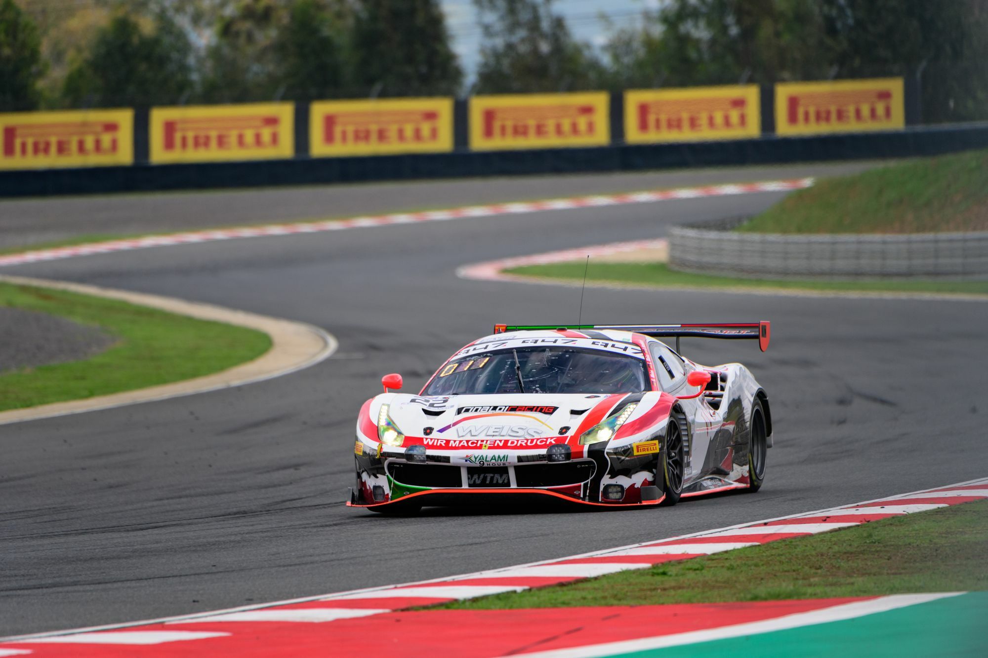 Nach einem Qualifying mit unterschiedlichsten Bedingungen startet das Wochenspiegel Team Monschau (WTM Racing) bei den 9 Stunden von Kyalami (Südafrika) von der dritten Position im "Silver Cup". Der Ferrari 488 GT3 mit Namen "Luigi" geht vom 21. Startplatz im Gesamtklassement in das Langstreckenrennen am Samstag. In der Intercontinental GT Challenge, der inoffiziellen Weltmeisterschaft der Klasse GT3, gilt im Qualifying die durchschnittliche Rundenzeit aller drei Fahrer in drei separaten Sessions. Leonard Weiss und Jochen Krumbach kamen in den ersten beiden Sitzungen noch bei trockenen Verhältnissen durch.