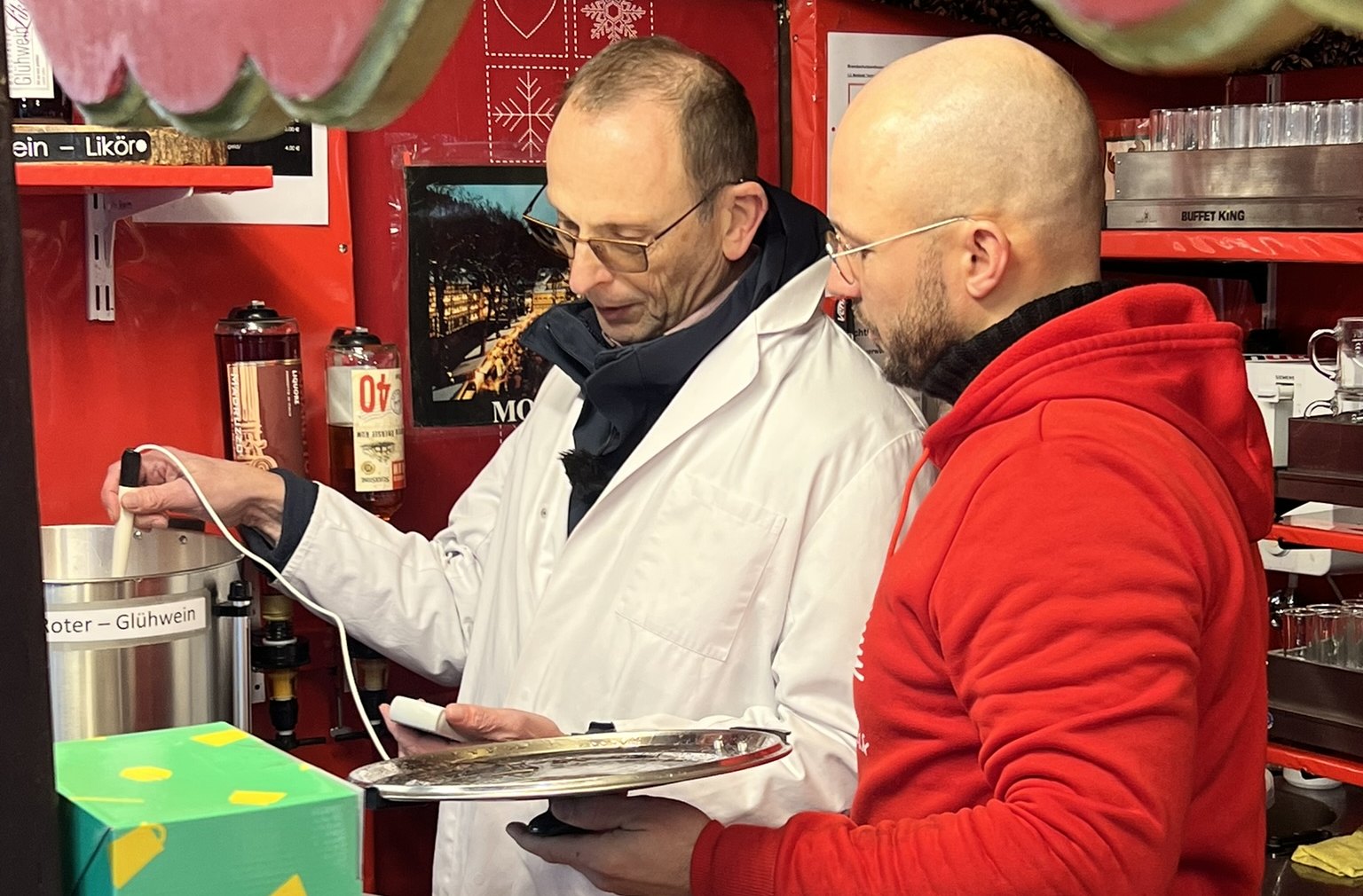 Monschau (Fö). Glühwein trinken oder Reibekuchen essen gehören zum Besuch des Weihnachtsmarktes einfach dazu. Dass man sie auch sorglos genießen kann, das prüfen Lebensmittelkontrolleure - kürzlich auch auf dem Monschauer Weihnachtsmarkt.