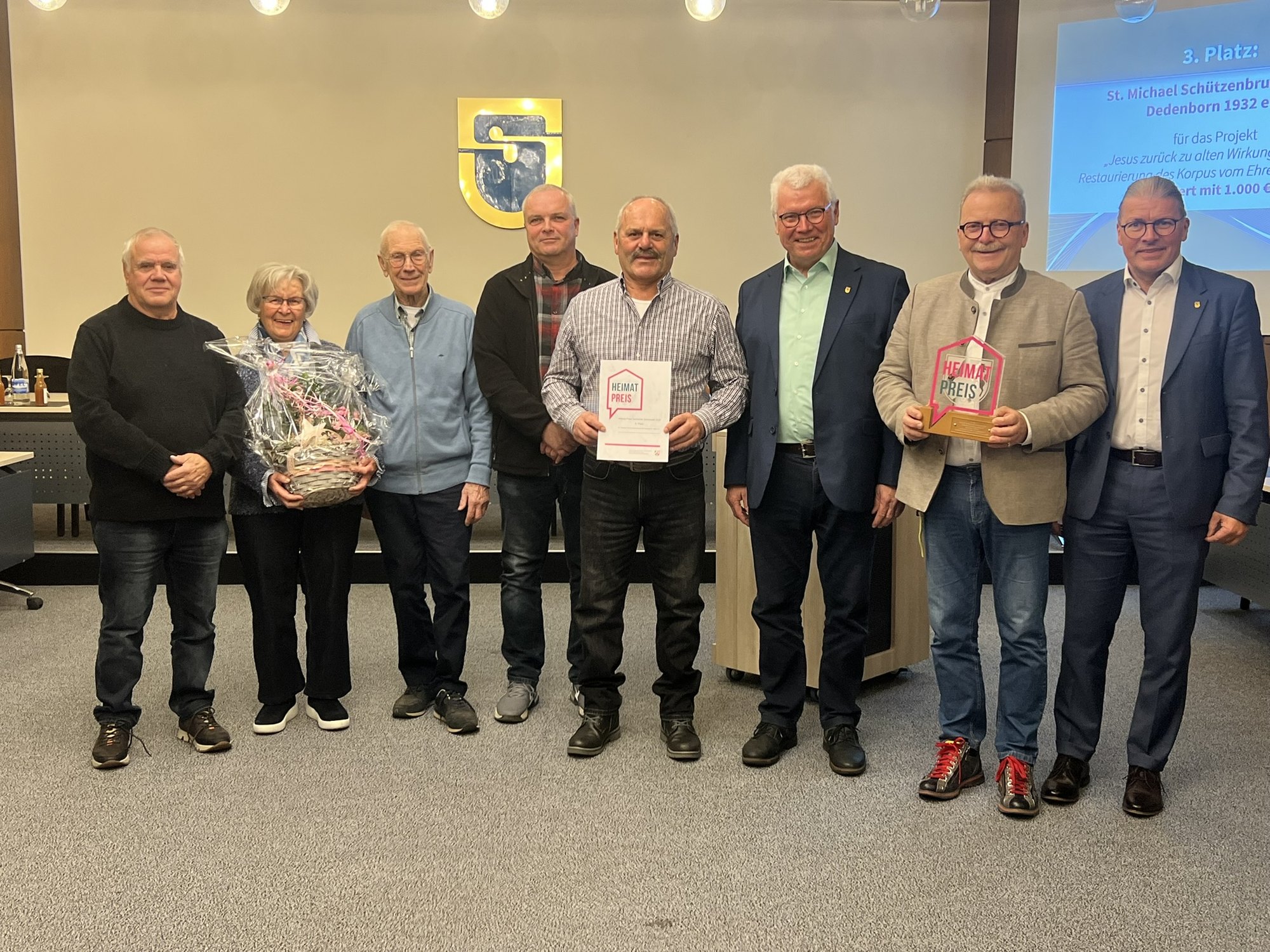 1000 Euro gehen an die St. Michael Schützenbruderschaft Dedenborn, die »Jesus« restauriert hat. Der lebensgroße Korpus wurde 1954 am Ehrenmal angebracht, 2004 jedoch demontiert, da er der der Witterung nicht mehr standhielt. »Nach 20 Jahren auf dem Speicher wurde er von Schreinermeister Erich Braun aus Höfen restauriert und hat in der Aufbewahrungsstätte am Friedhof einen dauerhaft trockenen Platz gefunden«, freut sich Kurt Bongard stellvertretend für die engagierten Ehrenamtler.