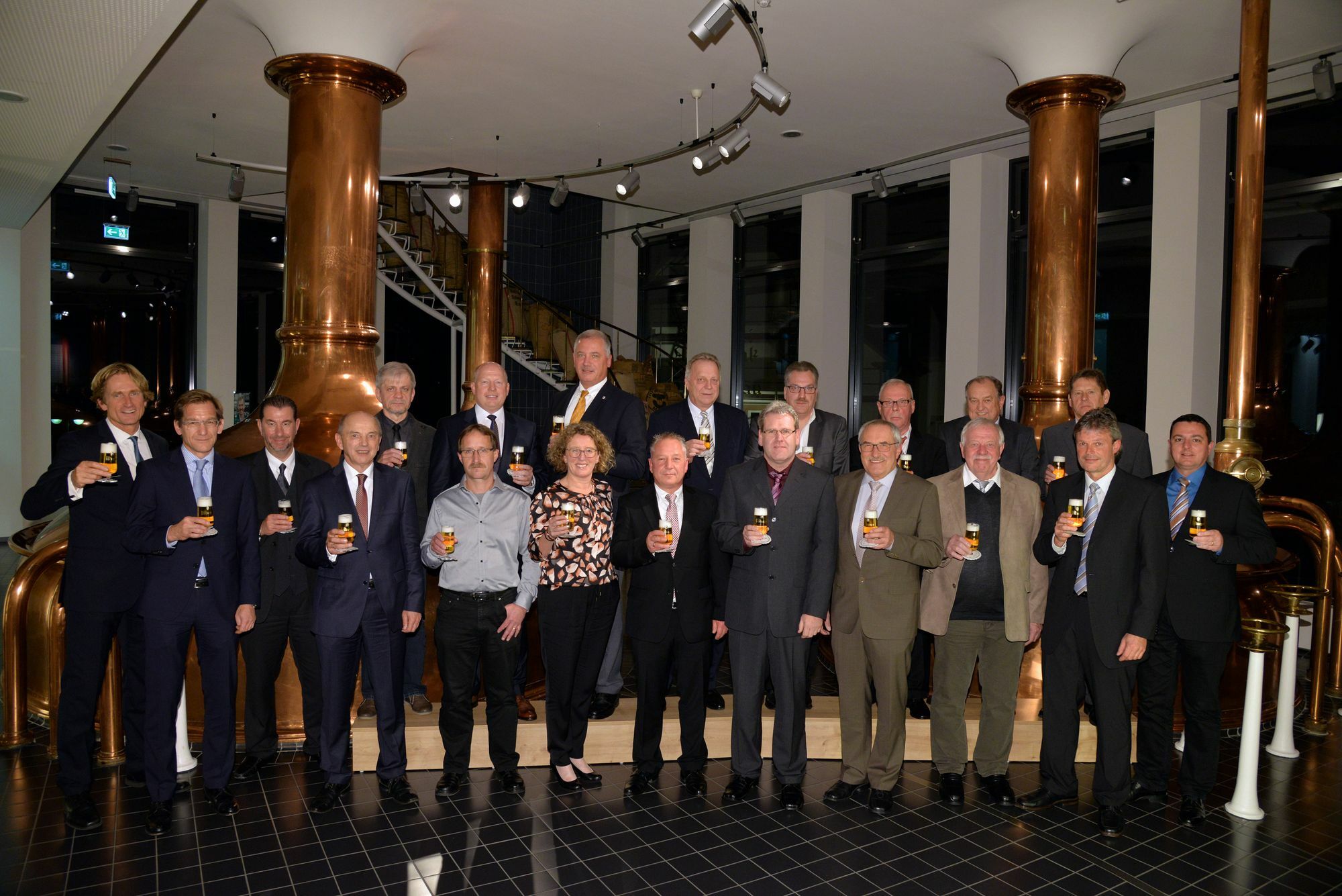 Im November wurden in der Bitburger Genießer-Lounge Mitarbeiter-Jubiläen gefeiert. Im feierlichen Rahmen wurden 14 Mitarbeiter sowie eine Mitarbeiterin für ihre treue Betriebszugehörigkeit geehrt - viele von ihnen gehören seit 25 Jahren zur Belegschaft, einer der Jubilare feierte sogar 40 Jahre. Geschäftsführung und Betriebsrat dankten ihnen für die langjährigen Verdienste. Zum Ausklang stießen sie mit frisch gezapftem Bitburger an und teilten gemeinsam ihre Erinnerungen aus insgesamt 390 Jahren in der Bitburger Brauerei. Die stolzen Kollegen in feierlicher Runde (v.l.n.r., untere Reihe): Jan Niewodniczanski (Geschäftsführer), Stephan Fahrig (Geschäftsführer), Axel Dahm (Sprecher der Geschäftsführung), Alfred Müller (Geschäftsführer), Winfried Moos, Sylvia Bettendorf, Reiner Kaltinski, Jürgen Löwe, Johannes Rausch, Manfred Bales, Alwin Schares, Harald Biewer; (obere Reihe) Wieslaw Smolarz, Jürgen Bisdorf, Klaus Rechin, Eberhard Fabig, Thomas Eppers, Peter Minden (40 Jahre), Manfred Borsutzky (Betriebsrat), Alfred Horn. Foto: Bitburger