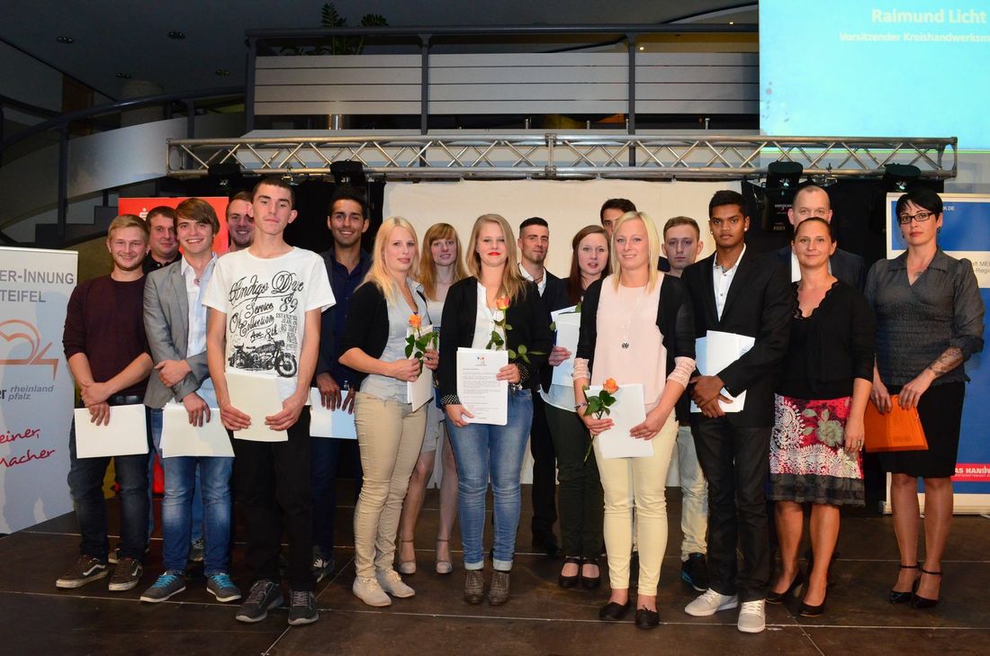 Bei der Lossprechungsfeier der Kreishandwerkerschaft MEHR in Bitburg erhielten 62 Gesellen ihre Abschlusszeugnisse. Insgesamt werden im Bezirk der Kreishandwerkerschaft MEHR in diesem Sommer 238 Nachwuchskräfte im regionalen Handwerk losgesprochen.