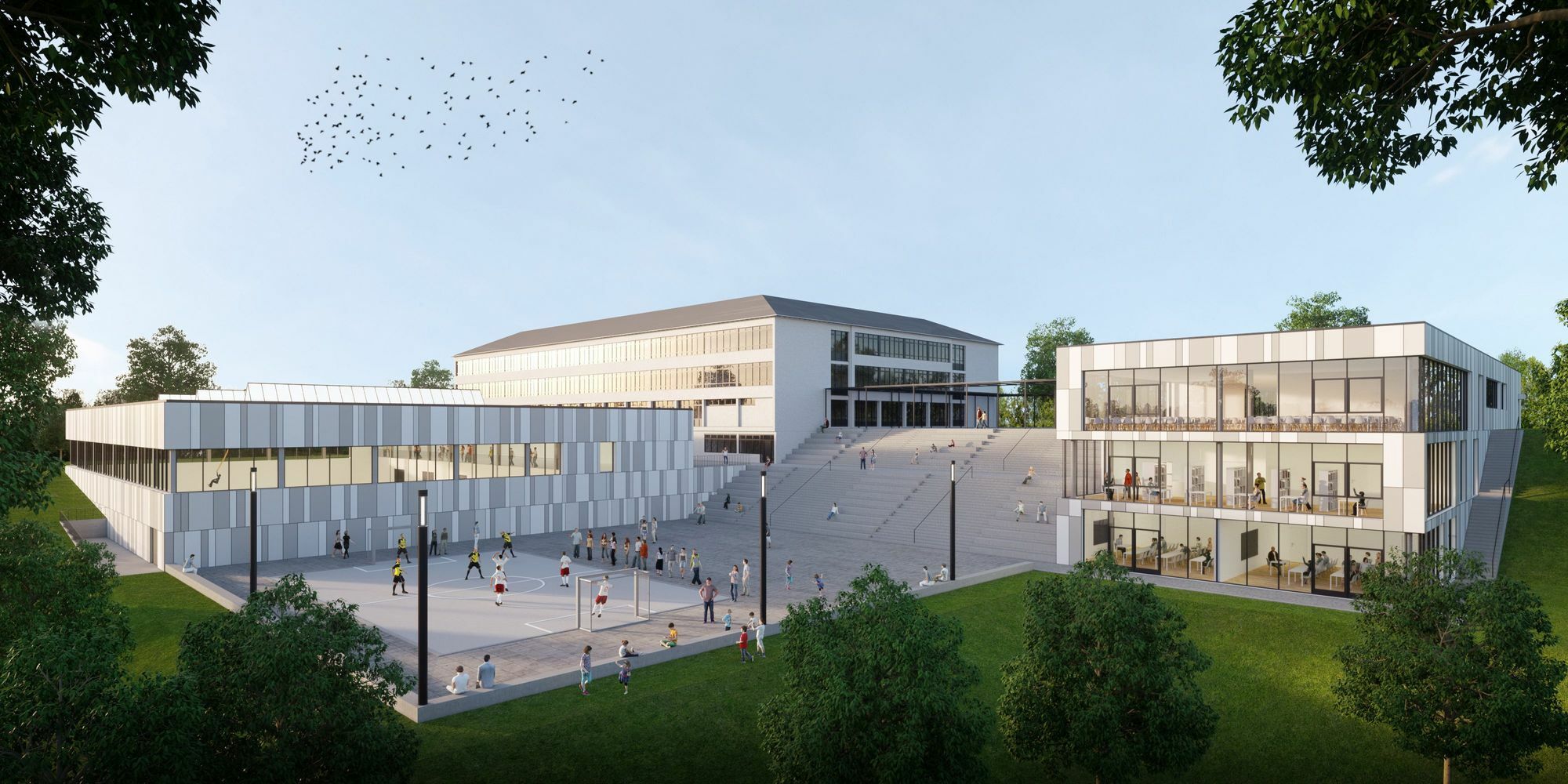 Ohne Zweifel ist die Erweiterung des St. Willibrord-Gymnasiums nicht nur ein Gewinn für die Schule. Beim Spatenstich am Dienstag verwies Landrat Joachim Streit auf die Bedeutung der Dreifeldturnhalle, die Vereine aus dem weiten Umland hierher strömen lassen werde. 15 Millionen Euro lässt sich der Kreis das Bauprojekt kosten. 3,4 Millionen Euro steuert das Land bei. Lange wurde diskutiert, ob die neue Halle drei Felder bekommt oder ob nicht zwei reichen. Streit unterstrich, dass die Entscheidung für die Dreifeldturnhalle richtig und "kein Luxus" gewesen sei. Er verwies auf die breite Nutzung der Wettkampfstätte über den Schulsport hinaus. ADD Präsident Thomas Linnertz ist zufrieden mit der Lösung. Es sei zwar ein finanzieller Kraftakt, aber eine wichtige zukunftsorientierte Investition. "Es geht um den Schulsport in der Eifel", hob auch er die Bedeutung der Halle über Bitburgs Grenze hinaus hervor. Doch zweifellos wird das Gymnasium am meisten davon profitieren. Schulleiter Andreas Merzhäuser ist sich dessen bewusst: Das gesamte Projekt mit Sanierung des alten Gebäudes aus dem Jahr 1965, dem Bau der neuen Halle, Mensa und Freiflächen nannte er einen "großzügigen Entwurf", der eine "angemessene Antwort" auf das Wachstum der Gymnasien, die Digitalisierung (im gesamten Gebäude wird es W-LAN Empfang geben) und die Umwandlung zur Ganztagsschule gebe. Erstmals verfüge das Gymnasium über gestaltete Freiflächen. "Freuen wir uns auf diese neue pädagogische Spielfläche", sagte Merzhäuser. Im Sommer 2018 soll es soweit sein. Im Herbst 2013 hatte der Kreistag mit seinem Beschluss den Grundstein für das Bauvorhaben gelegt. Vor einem Jahr haben die baulichen Vorbereitungen begonnen. Dazu gehörte der Abriss der wegen Einsturzgefahr gesperrten alten Sporthalle. bil Grafik: Architekten Naujack Rind Hof GmbH Fotos: Sybille Schönhofen