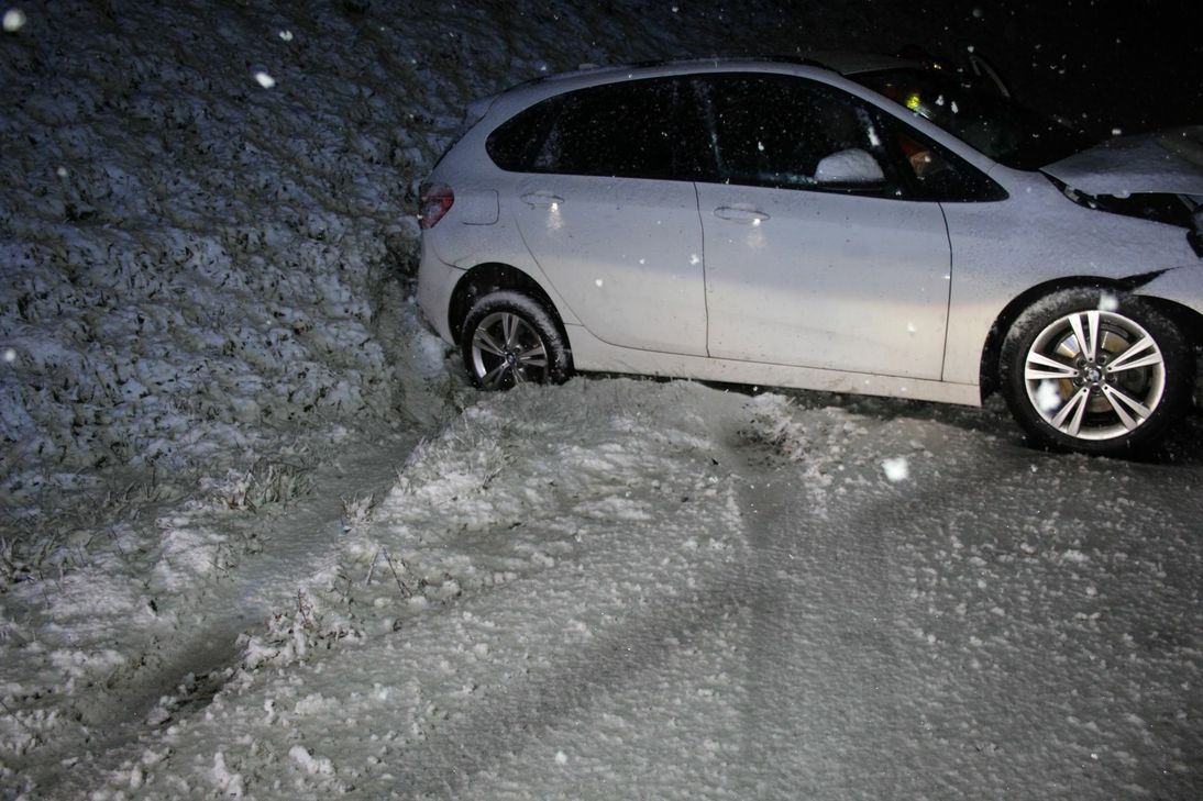 An einem Gefälle der Bundesstraße verlor der Auflieger eines Holztransporters aufgrund des starken Schneefalles die Bodenhaftung und rutschte quer über die Fahrbahn in den Gegenverkehr. Dabei kollidierte er mit drei Fahrzeugen und schob diese teilweise ineinander und in den Straßengraben. Zum Unfallzeitpunkt war die Straße schneebedeckt. Bei diesem Verkehrsunfall wurden insgesamt zwei Personen leicht verletzt.