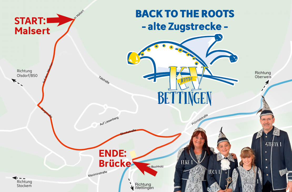 In diesem Jahr heißt es wieder "Jüpphü" in den Straßen von Bettingen, denn der Karnevalsverein und das Prinzenpaar, Prinz Stefan I. und Prinzessin Elke I., veranstalten am Sonntag, 11. Februar, nach vier Jahren wieder einen Fastnachtsumzug. Unter dem Motto "Back to the roots" geht es um 14.11 Uhr auf alter Zugstrecke los. Anschließend wird zur Afterzugparty im Jugendheim eingeladen, bei der die "Beat Brother DJs" den Saal in Stimmung bringen werden. Alle, die schon vorher in Karnevalsstimmung sind, sind bereits am Samstag, 10. Februar, zur Kinderkappensitzung des DJK und des Kinderprinzenpaares, Luca I. und Emily I., im Jugendheim eingeladen.