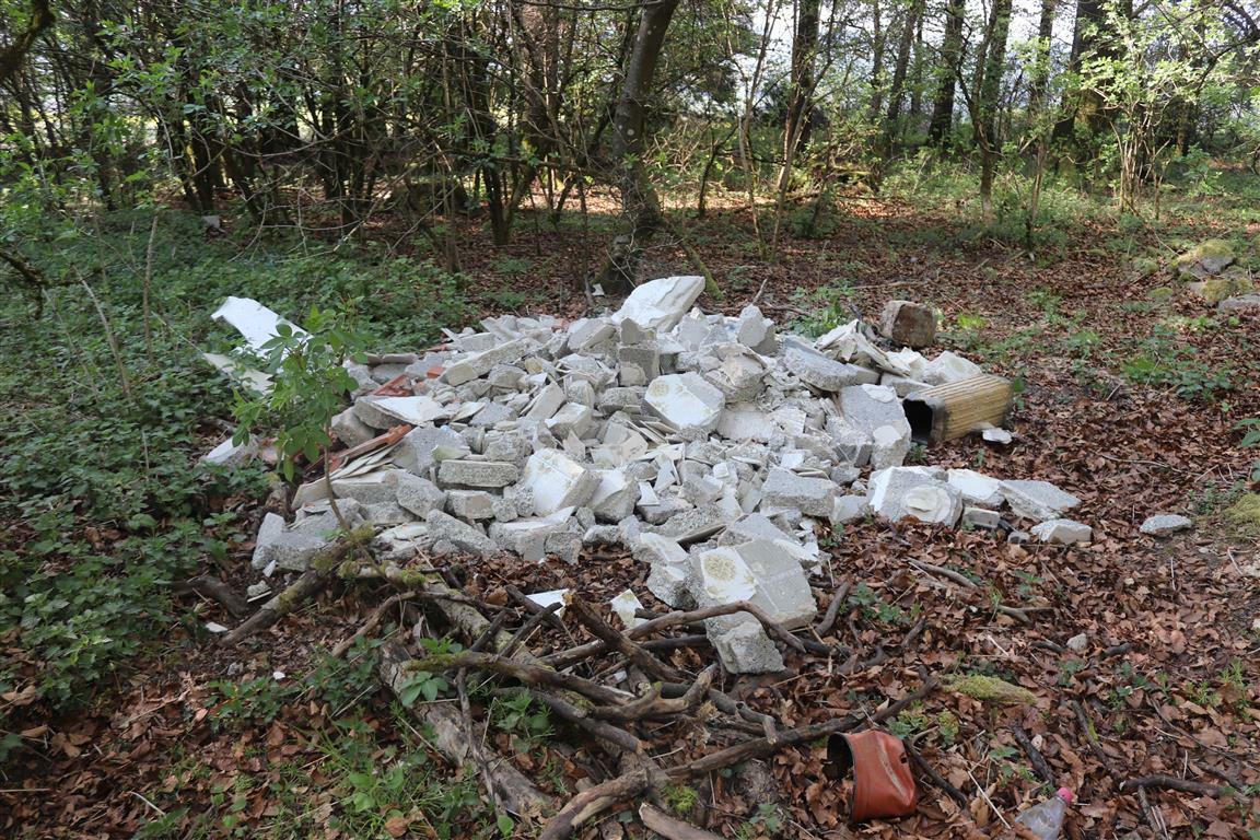 Am Freitag, 24. April, wurde in einem Waldstück bei Wallersheim, Distrikt "Auf der Vogelsheck", durch bislang unbekannte Täter illegal Bauschutt entsorgt.