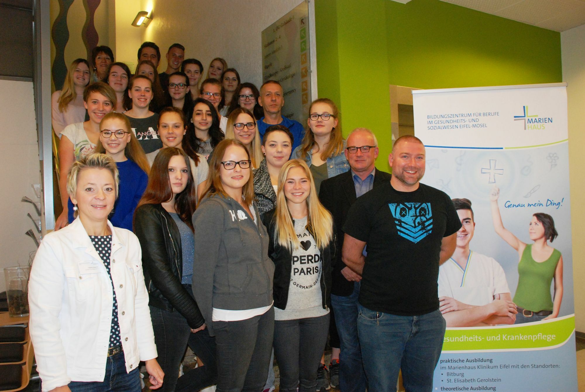 Im Rahmen eines Einführungstages wurden die jungen Frauen und Männer willkommen geheißen und über die innerbetrieblichen Strukturen informiert. Während ihrer dreijährigen Ausbildung werden die Auszubildenden in den Praxisphasen an den Klinikstandorten Bitburg und Gerolstein eingesetzt. Der theoretische Teil der Krankenpflegeausbildung findet im Bildungszentrum Eifel-Mosel in Wittlich-Wengerohr statt. Ihre Ausbildung haben begonnen: Eva Arnoldy (Bitburg-Erdorf), Nicole Berens (Utscheid/Rußdorf), Anna-Lena Brors (Fleringen), Ayleen Bryant (Neidenbach), Johannes Christ (Oberstedem), Paulina Esch (Fließem), Anna Essenpreis (Bitburg), Martin Franze (Badem), Rebecca Fries (Oos), Svenja Hermes (Nusbaum), Joachim Junk (Trier), Anna-Marie Maaßen (Karlshausen), Clara Petri (Andernach), Celine Schaal (Wawern), Luisa Schäler (Prüm), Schmitz Oliver (Heilenbach), Nele Schneider (Schweich), Michelle Schweigerer (Plütscheid), Yassmin Shabandar (Bitburg), Monique Thiel (Neidenbach), Elena Tobehn (Niederkail), Vivien Zeimentz (Fließem), Jasmin Zirra (Nusbaum), Studentin der Pflegewissenschaft: Isabel Paas (Usch).