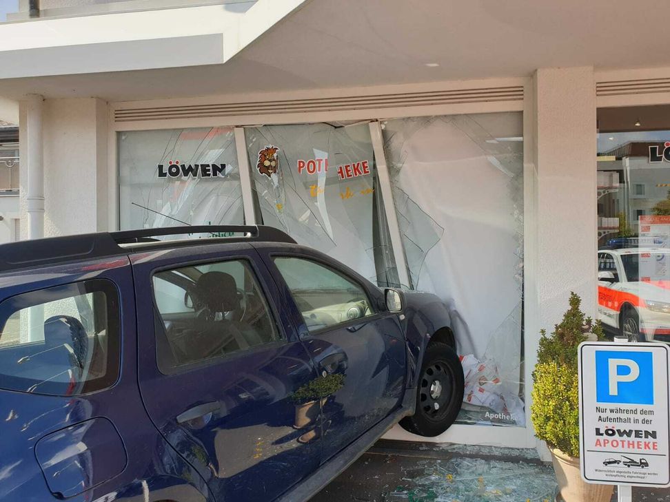 Am Freitagmittag, 30. August, ereignete sich in Bitburg ein Verkehrsunfall, bei dem ein PKW durch eine Glasfront einer Apotheke fuhr und dabei teilweise in den Innenraum des Gebäudes eindrang.