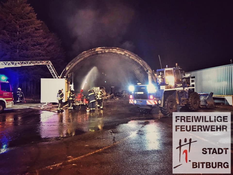 Am Sonntag, 3. Mai, ereignete sich zwischen 22 Uhr und 22.30 Uhr ein Brand eines ehemaligen Flugzeughangars auf dem Flugplatz in Bitburg. Als die Einsatzkräfte der Feuerwehr und der Polizei am Einsatzort eintrafen, stand der Hangar bereits im Vollbrand. Die ca. 100 eingesetzten Feuerwehrleute konnten mithilfe des Technischen Hilfswerkes Bitburg das Feuer schnell unter Kontrolle bringen. Der Hangar brannte dennoch fast vollständig aus. Die Schadenshöhe wird ersten Einschätzungen nach mit ungefähr 250.000 EUR beziffert. Verletzt wurde niemand. Die Ermittlungen zur Brandursache werden durch die Kriminalpolizei geführt und dauern an. Zeugen des Vorfalles werden gebeten, sich mit der Polizeiinspektion Bitburg unter Tel.: 06561-968510 in Verbindung zu setzen. (red)