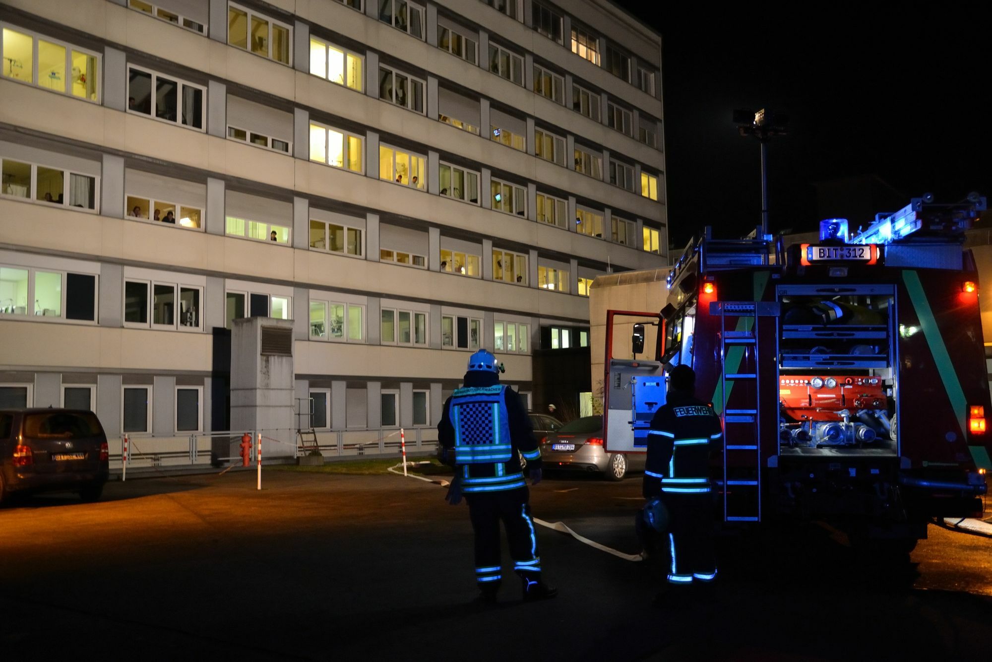 Großeinsatz der Feuer im Marienhaus Klinikum in Bitburg: Am Montagabend brannte es gegen 20.15 Uhr in dem Krankenhaus. Zwei Personen zogen sich laut Wehrleiter Manfred Burbach beim Versuch den Brand noch vor Eintreffen der Feuerwehr zu löschen eine leichte Rauchgasvergiftung zu. Der Schwelbrand war offenbar nach Arbeiten auf einem Vordach im Bereich des vorderen Traktes des Krankenhauses ausgebrochen. Dort werden derzeit Arbeiten zur Verlegung von Schweißbahnen durchgeführt. Von dort zog der Rauch offensichtlich in das Innere des Gebäudes. Im Eingangsbereich und im hinteren Bereich des Klinikums entwickelte sich starker Rauch. Die Feuerwehr hatte den Schwelbrand rasch unter Kontrolle. Eine Gefahr für die Patienten habe nicht bestanden, so Wehrleiter Manfred Burbach. Neben den sich im Einsatz befindenden Feuerwehren Stadtmitte, Masholder und Mötsch standen zusätzlich mehrere Rettungsfahrzeuge des DRK und das THW während den Löscharbeiten ständig in Bereitschaft. Die Ermittlungen zur Entstehung des Schwelbrandes dauern an. Angaben zu möglichem Sachschaden sind derzeit noch nicht möglich. Foto: Siko