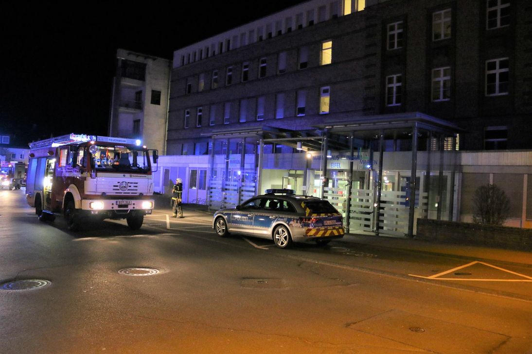 Aufgrund des Gefahrenpotentials wurden umgehend die Löschzüge 2 (Mötsch/Masholder) und 3 (Stahl/Matzen/Erdorf) nachalarmiert. Der vorgehende Angriffstrupp entdeckte in einem Technikraum eines Aufzuges einen Brand in der Elektroverteilung, welcher schnell gelöscht werden konnte. Durch Belüftungsmaßnahmen wurde der betroffene Gebäudeteil wieder entraucht. Der 2. Löschzug kontrollierte parallel den rückwärtigen Bereich dieses Gebäudeabschnittes auf Auffälligkeiten und Brandgase. Der Einsatz konnte zügig abgeschlossen werden, verletzt wurde niemand und der Krankenhausbetrieb wurde nicht beeinträchtigt. Neben der Feuerwehr war die Polizei Bitburg, sowie der THW Ortsverband Bitburg und der DRK Ortsverein Bitburg e. V. als Führungsunterstützung, im Einsatz. Foto: Steil