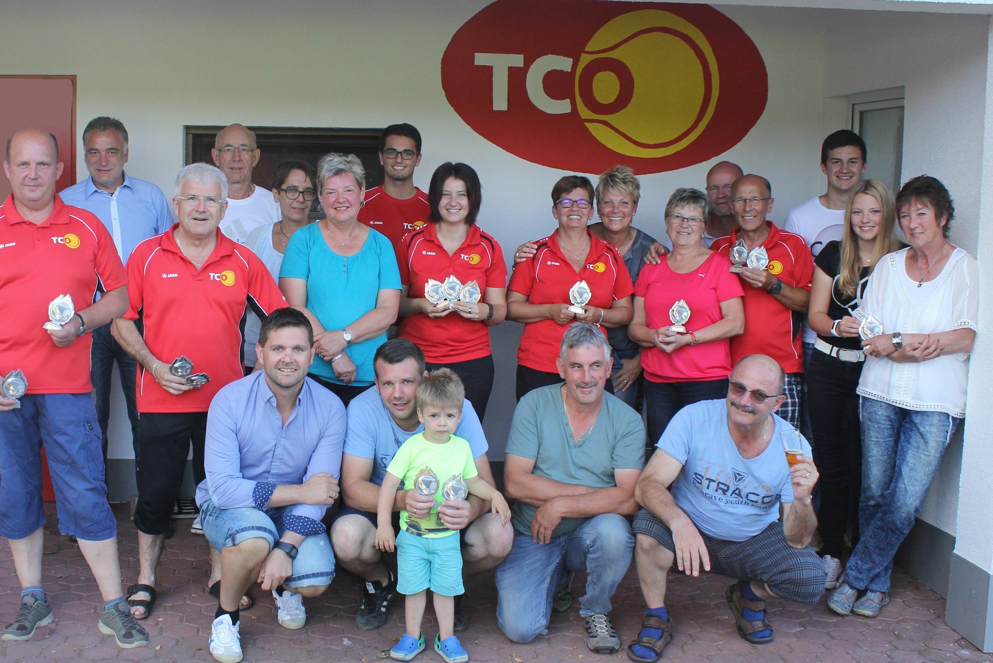 Und Petrus ist doch ein absoluter Tennisfan: Tolles Sommerwetter an beiden Tagen der Clubmeisterschaften des Tennisclub Olzheim. Nach etwa 100 Spielen in den Vorrundengruppen von Mai bis August fanden die Endspiele an zwei Tagen wieder am letzten August- und am ersten Septemberwochenende statt. Viele knappe Spiele - fünf Spiele wurden erst im Champions Tiebreak entschieden - und teilweise großartiges Tennis begeisterten die Zuschauer. Die große Teilnehmerzahl bedeutete zwar enormen organisatorischen Aufwand für den Sportwart, aber gleichzeitig war es auch ein tolles Erlebnis für viele neue Mitglieder, die direkt an den Clubmeisterschaften teilnahmen und sich auch in die Siegerlisten eintragen konnten. Alle Spiele konnten an den beiden Wochenenden bei hohen Temperaturen und Sonnenschein durchgezogen werden, bevor die strahlenden Sieger und Platzierten vom ersten Vorsitzenden Bernhard Lux und Sportwart Oliver Herbst - unterstützt von dem jüngsten Tennisspieler - bei der lockeren Siegerehrung ihre Pokale in Empfang nehmen konnten. Dann war es wieder wie jedes Jahr, denn alle Tennisspieler, Freunde und interessierte Zuschauer feierten noch einige schöne Stunden zusammen. Clubmeister 2016 wurden bei den Herren U50 Marco Mergen vor Oliver Herbst und Herbert Hess, bei den Herren Ü50 Volkmar Herbst vor Bernhard Lux und Karl-Heinz Knauf. Im Damen-Einzel setzte sich Carmen Herbst vor Leonie Büsch und Doris Büsch durch. Die Sieger in den Doppeln heißen bei den Herren Oliver Herbst/ Manfred Lafleur vor Karl-Heinz Knauf/ Marvin Otten und Dieter Büsch/Herbert Hess, bei den Damen Doris Büsch/Regina Knauf vor Leonie Büsch/Britta Heuner und Carmen Herbst/Doris Lux. Im abschließenden Mixed setzten sich Adi Otten/Volkmar Herbst gegen Leonie Büsch/Bernhard Lux durch. Dritte wurden Carmen Herbst/Marvin Otten. Mehr unter: www.tennisclub-olzheim.de