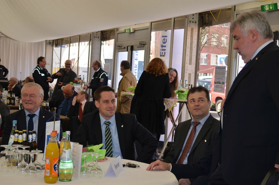 Auf dem Podium begrüßten unter der Moderation von Dagmar Schommer Bitburgs Bürgermeister Joachim Kandels, Angelika Thielen, Kommunikationschefin der Bitburger Braugruppe, Andreas Theis, Vorstand der Volksbank Eifel, und Edgar Bujara als Vertreter der Autowelt Bitburg und des Bitburger Gewerbevereins die Gäste. Das Wetter spielte am Freitag mit. Wenn es so bleibt, erwartet die Stadt wieder mehr als 65.000 Besucher an den drei Messetagen. Für die neue Leiterin der Kommunikation der Bitburger Braugruppe ist es der erste Beda Markt. Zum 200. Jubiläum der Brauerei warb sie für das zum Jubiläum entwickelte „Bitburger 1817“, das am Beda Markt-Wochenende Premiere hat, bevor es am Montag in den Handel kommt. Nicht nur mit dem naturtrüben Bier feiert Bitburger das Jubiläum. Thielen kündigte an, dass sich die Bevölkerung am 9. Juli im Rahmen des Folklorefestivals auf 200 Minuten Freibier am Bierbrunnen freuen kann. Und wer die einmalige Gelegenheit wahrnehmen möchte, die Braustätte in Bitburg-Süd von innen zu begutachten, der kann das beim Tag der offenen Tür am 17. September tun. Zurück zum Beda Markt: Edgar Bujara machte Lust auf die Automobilausstellung, die in diesem Jahr mit einem neuen Konzept auf dem Bedaplatz vor allem auch eine jüngere Zielgruppe ansprechen soll. Er verriet, dass die Automobilausstellung seit 1980 erstmals tatsächlich auf der Kippe stand. Zwei Händler hatten ihre Teilnahme zurückgezogen. Die Belastung sei ihnen personell und finanziell zu groß geworden, denn wer mitmacht, der muss an drei Ausstellungsorten gleichzeitig zugegen sein: Außer auf dem Bedaplatz auch in der Halle der Kreissparkasse und in den Autohäusern. Anders als in den Vorjahren präsentieren sich nun nur noch fünf Händler in kleineren Zelten. Aber Edgar Bujara sieht das neue Konzept positiv. Es spreche mehr als in der Vergangenheit die jüngere Käuferschicht an. Zusätzlich zu den Zelten wird der Außenbereich zur Ausstellung von Oldtimern und Neufahrzeugen genutzt. Neu ist auch, dass der gesamte Bedaplatz in eine Festmeile umgewandelt wurde. Bierstand, Formel 1-Truck und viele Food-Trucks laden zum Verweilen und Genießen bei Essen und Trinken ein. Ein Angebot, das vor allem jüngere Bedamarkt-Besucher anziehen dürfte. Andreas Theis betonte bei der Messe-Eröffnung im Handwerkerzelt die Wichtigkeit des Handwerks, das „in jeder Stelle des Lebens verankert“ sei und aus Sicht des Bankers erfolgreich ins Jahr 2017 gestartet ist. „Die Ausgangslage ist gut in Boom-Town Bitburg“, sagte der Volksbank-Vorstand. 80 Handwerker sind beim Beda Markt vertreten. Eine Beda Markt Tradition geht dieses Jahr zu Ende: Joachim Kandels bedauerte den Verlust der Landwirtschaftsschau, die in der gewohnten Form nur noch an diesem Wochenende mit von der Partie sein wird. Ab dem nächsten Jahr findet sie in der neuen Auktionshalle in Fließem statt. Kandels kann sich jedoch vorstellen, dass die Landwirte künftig in einer anderen Form in Bitburg dabei sein werden. Wie das gelingen kann, werde er mit der Rinder Union West direkt nach dem Beda Markt besprechen. Ihm schwebt als Ausstellungsort der Exerzierplatz der Alten Kaserne vor. Neben den Ausstellungen der Automobilwelt, des Handwerks und der Landwirtschaft lädt die Gesundheits- und Fitnessmesse in der Stadthalle ab Samstag dazu ein zu schauen, zu erleben und sich zu informieren. bil Fotos: Sybille Schönhofen Im Gastronomiezelt auf dem Platz am Alten Gymnasium treten auf: Freitag, 17. März 18.30h - 21.00h Afterwork-Treff mit Musiklegenden aus der Eifel 21.00h - 23.00h Plexiphones aus Mönchengladbach Samstag, 18. März 18.00h - 21.00h Unplugged Gang mit Alois Kirchen 21.00h - 23.00h Erich & the Funky Moneyrollers Sonntag, 19. März 11.00h - 13.00h Musikalischer Frühstücksbrunch mit Hans Binsfeld Alle Informationen rund um die Messe finden Sie in der Messezeitung des Wochenspiegels und als E-Paper auf wochenspiegelive.de unter dem Link http://www1.wi-paper.de/book/read/id/00021B19E039C46E