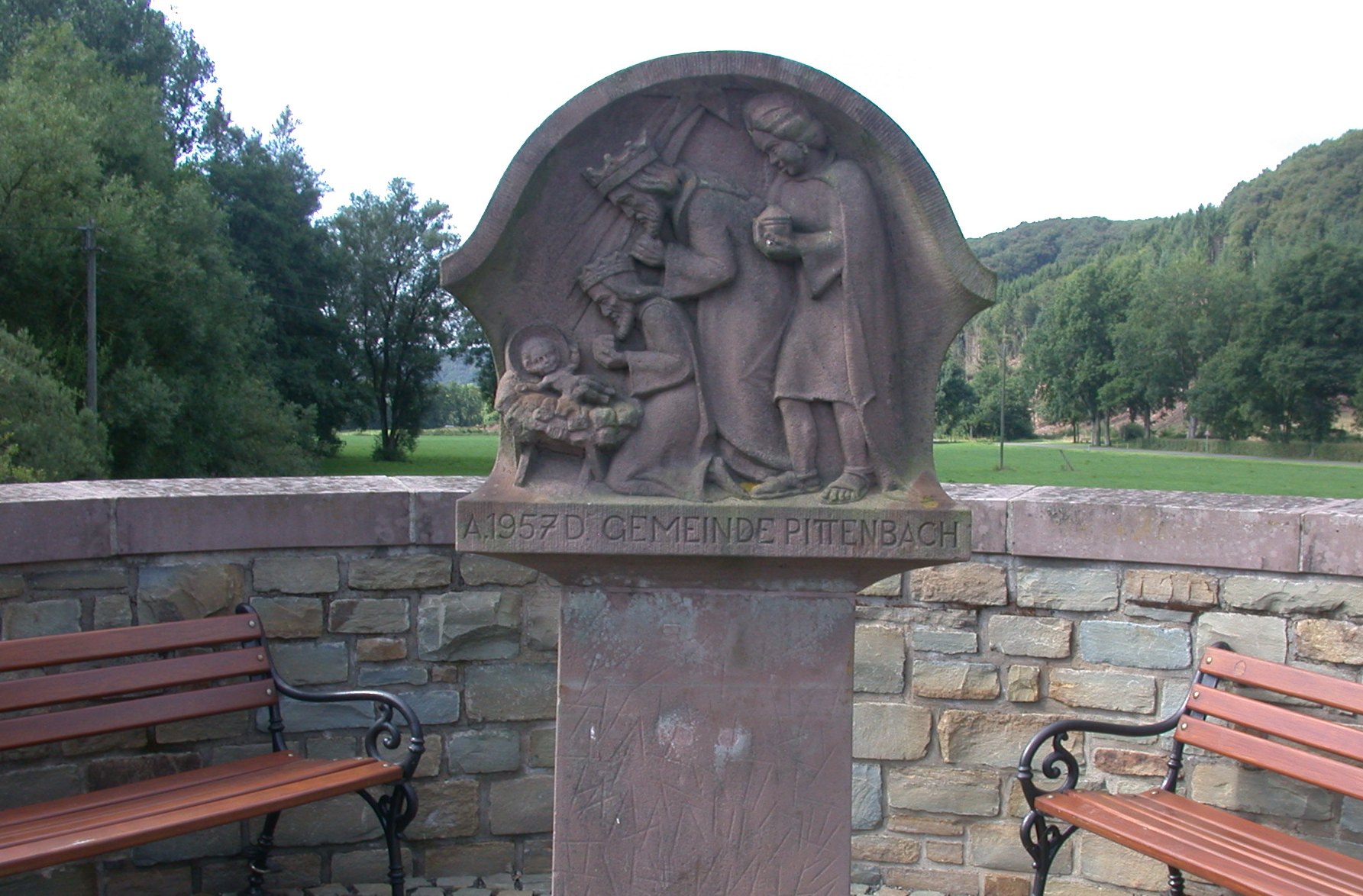 Die kleine Gemeinde Pittenbach im Prümtal (rund 100 Einwohner) hat keine eigene Kapelle. In den 1960er Jahren war das Thema "Kapellenbau" mal in aller Munde und stand sogar einmal auf der Tagesordnung im Gemeinderat. Der Plan wurde jedoch verworfen. Bereits vorher - im Jahre 1957 - wurde der wunderschöne Bildstock mit der Darstellung der Heiligen Drei Könige auf der Prümbrücke aufgerichtet und eingeweiht. Seither ist dieser Ort ein kleiner Mittelpunkt im schmucken Dörfchen.