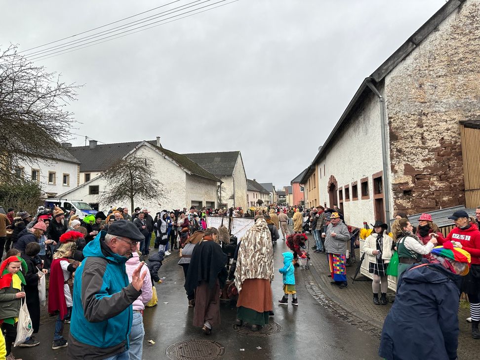 Ab 13 Uhr stellen sich die Gruppen bei der ehemaligen Volksbank auf. Der Festumzug beginnt um 14.11 Uhr und zieht durch die Hauptstraße. Auch in diesem Jahr gibt es anschließend eine After-Zug-Party bei der Bushaltestelle in der Dorfmitte sowie eine Fastnachtsdisco im Gasthaus Heinen. Vor, während und nach dem Umzug werden Getränke und Essen angeboten.