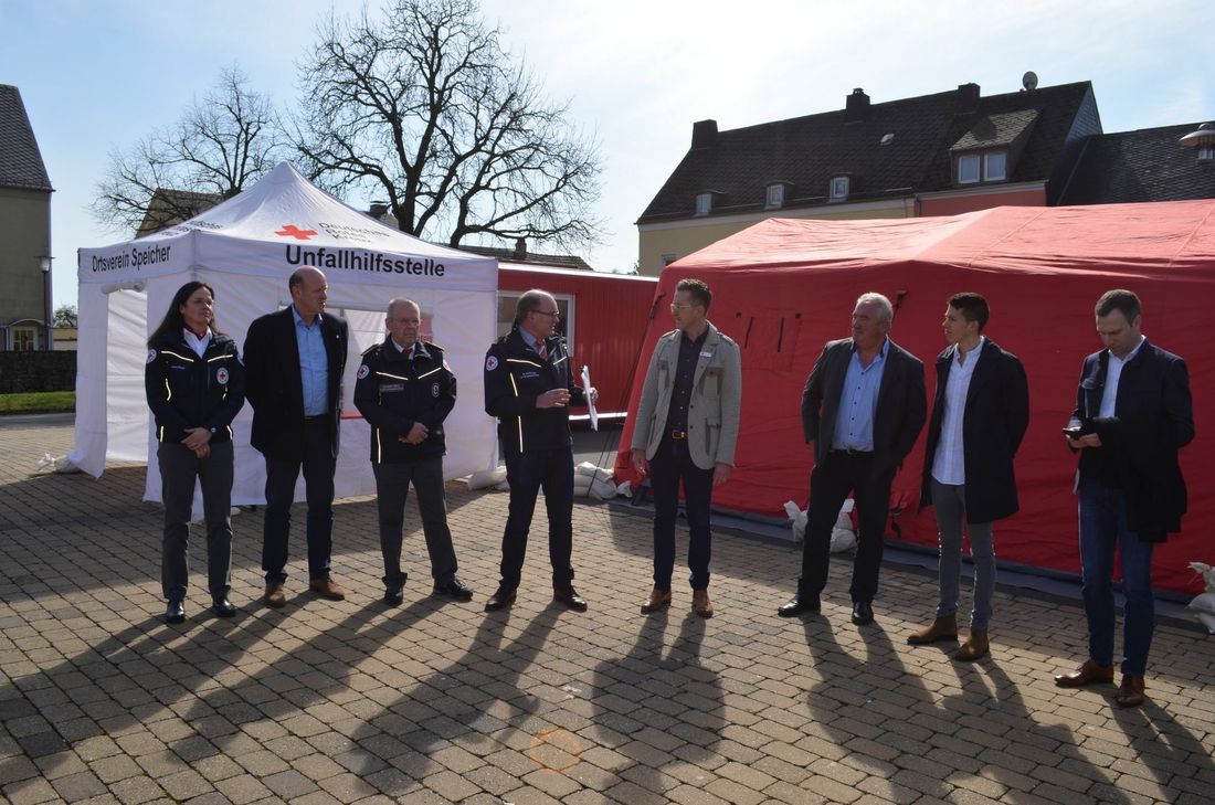 "Wir möchten das Gesundheitssystem im Kreis stärken und die überlaufenen Krankenhäuser und Arztpraxen entlasten", erklärt Landrat Joachim Streit. "Der Kreis ist verpflichtet etwas zu tun, um den Menschen die Angst zu nehmen und eine Anlaufstelle im Krankheitsfall zu bieten". Der Aufbau dieser Sichtungsstelle wurde durch die Gruppe "Infrastruktur Katastrophenschutz Eifelkreis" der Freiwilligen Feuerwehren des Eifelkreises, den Kreisjugendfeuerwehrverband und dem DRK Kreisverband Bitburg-Prüm e.V. übernommen. Der Betrieb dieser Einrichtung wird der DRK Kreisverband Bitburg-Prüm mit seinen ehrenamtlichen Helfern der Ortsvereine des Eifelkreises in Zusammenarbeit mit dem Gesundheitsamt Bitburg übernehmen. Auch das Marienhaus Klinikum Eifel in Bitburg ist beratend beteiligt. "Die Sichtungsstelle ist in Zusammenarbeit der Blaulichtfamilie des Eifelkreises entstanden. In den ersten 14 Tagen, wird die Arbeit hier vor Ort nur von Ehrenamtlichen des DRK übernommen", so Rainer Hoffmann, Geschäftsführer beim DRK Kreisverband Bitburg-Prüm e.V.. Das Personal der Sichtungsstelle hat den Auftrag, Personen nach den Kriterien des Robert-Koch-Institutes Berlin, mittels eines festgelegten Schemas zu sichten. Entsprechend den daraus resultierenden Ergebnissen werden Empfehlungen bzw. Anordnungen des Gesundheitsamtes ausgesprochen oder aber auch Abstrich-Testungen durchgeführt. Es werden primär zwei Sichtungsmöglichkeiten, einmal für fußläufig eintreffende Personen, aber auch für Personen, die in ihrem eigenen Fahrzeug diese Möglichkeit nutzen wollen, eingerichtet. Doch der Landrat warnt: "Es sollen jetzt nicht alle Leute hier hinkommen, um sich einfach mal testen zu lassen. Nur Personen, die auch wirklich Krankheitssymptome aufweisen und keinen Termin bei ihrem Arzt bekommen, sollen vorbeikommen. Ohne Krankheitssymptome wird auch nicht getestet oder beraten. Beratung gibt es auch unter den bekannten Hotlines." Der Grund, warum nicht jeder getestet werden kann, liegt auf der Hand: Es gibt nicht genügend Material wie Schutzanzüge und Hygienemittel. "Wir haben nur ein bestimmtes Kontingent an Ressourcen und der Nachschub ist nicht gesichert", sagt Streit. Die Kosten für den kompletten Einsatz trägt der Eifelkreis. Extra Die Öffnungszeiten der Sichtungsstelle ab Dienstag, 17. März: Mo.-Do. von 8 bis 16 Uhr Fr. von 8 bis 13 Uhr Sa./So. von 10 bis 14 Uhr Betroffene bringen bitte Ihre Krankenversicherungskarte und Ihren Personalausweis mit. Fotos: Schröder