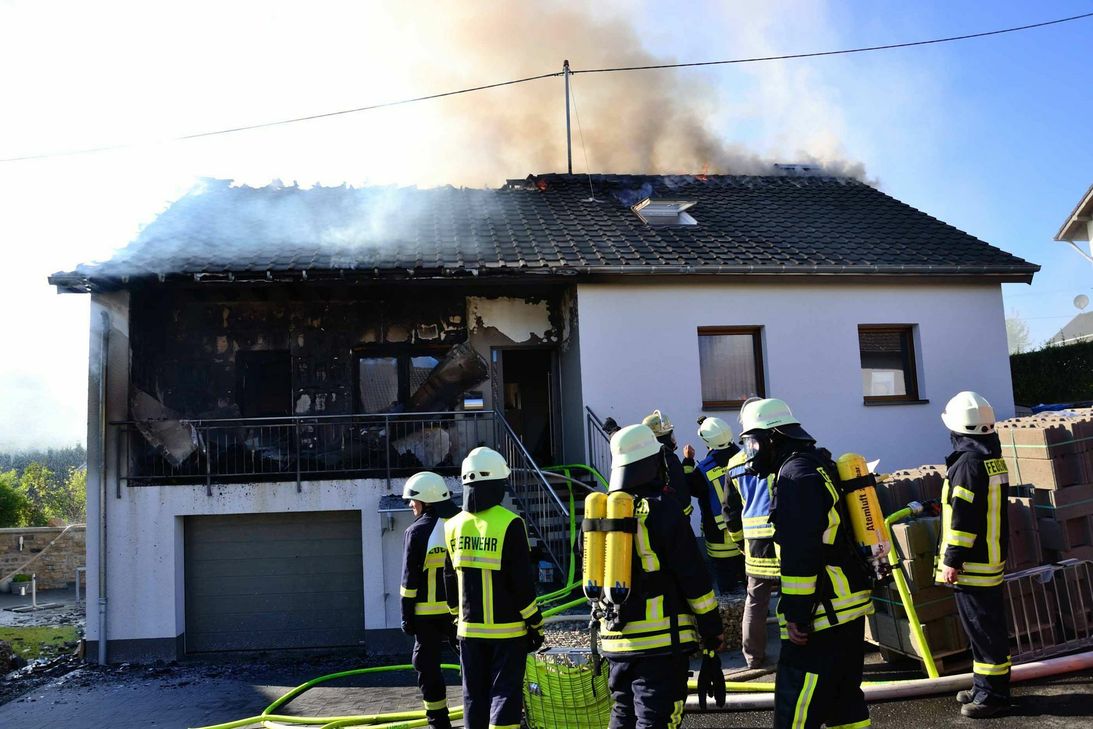 Neustraßburg. Am vergangenen Mittwoch brannte ein Dachstuhl in Neustraßburg. Das Feuer brach nach Auskunft der Feuerwehr am Nachmittag auf dem Balkon aus, wo Kartons und Unrat lagen, und griff auf den Dachstuhl über. Nachbarn hatten die Feuerwehr alarmiert. Im Einsatz waren die Wehren aus Kyllburg, Neidenbach, Burbach, Balesfeld, Prüm, Schönecken und Seffern. In der Nacht mussten die Einsatzkräfte erneut zu dem Wohnhaus ausrücken, da es im Dachstuhlbereich wieder brannte. Offenbar hatten sich Glutnester entzündet und breiteten sich aus. Die Löscharbeiten dauerten bis in die frühen Morgenstunden an. Rund 40 Einsatzkräfte der Feuerwehr einschließlich der Drehleiter aus Bitburg waren im Einsatz. Verletzt wurde niemand. Der Schaden liegt im sechsstelligen Bereich. Das Haus ist unbewohnbar. Foto: Siko