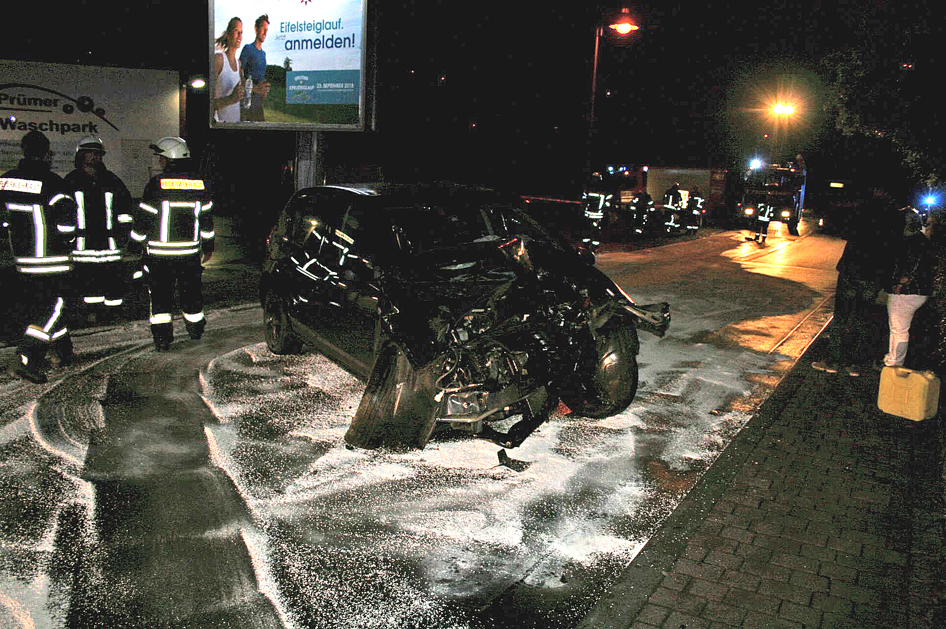 Am Dienstagabend befuhr ein Fahranfänger gegen 21 Uhr mit seinem Kleinwagen die B410 von Prüm in Richtung Niederprüm. In Höhe des Waschparks kam er wohl infolge der mit Öl verschmierten und nassen Fahrbahn ins Schleudern und prallte gegen den Mast einer Werbetafel. Danach wurde er zurück auf die Bundesstraße katapultiert und kam quer auf der Fahrbahn zum Stehen. Der Fahrer aus dem Altkreis Prüm wurde verletzt vom Rettungswagen des DRK ins Krankenhaus Prüm gebracht. Die B410 musste vorübergehend gesperrt werden. Im Einsatz waren die Polizei, die Feuerwehren Prüm und Niederprüm, das DRK und die Straßenmeisterei.