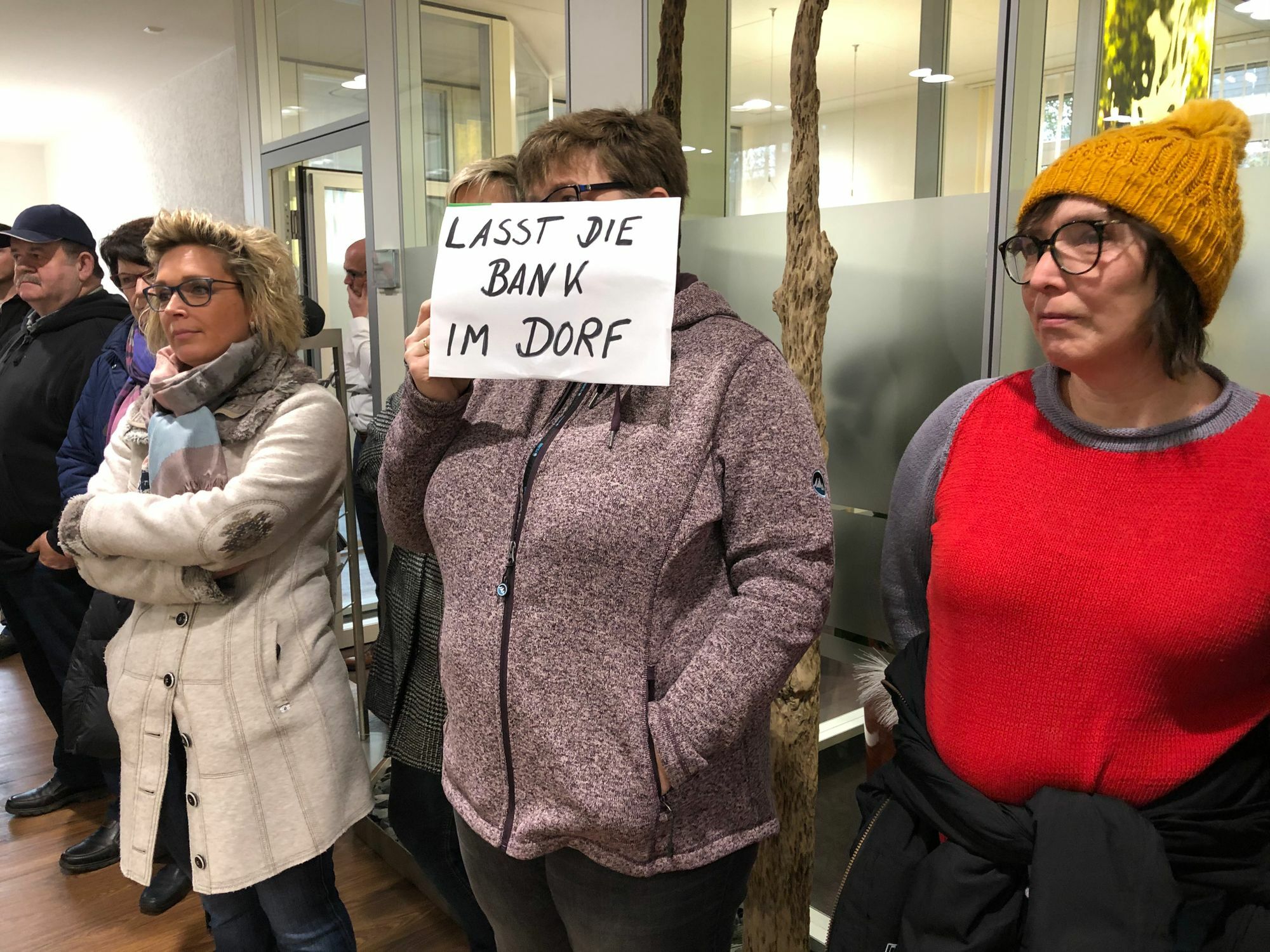 Die versammelten Kunden der Genossenschaftsbank kritisierten, dass sie vor vollendete Tatsachen gestellt werden - »und das in einem Genossenschaftsbund«. Eine Dame schimpfte: »Darf die Bank sich noch Raiffeisen nennen? Herr Raiffeisen hat die Bank im Dorf gewollt.«
