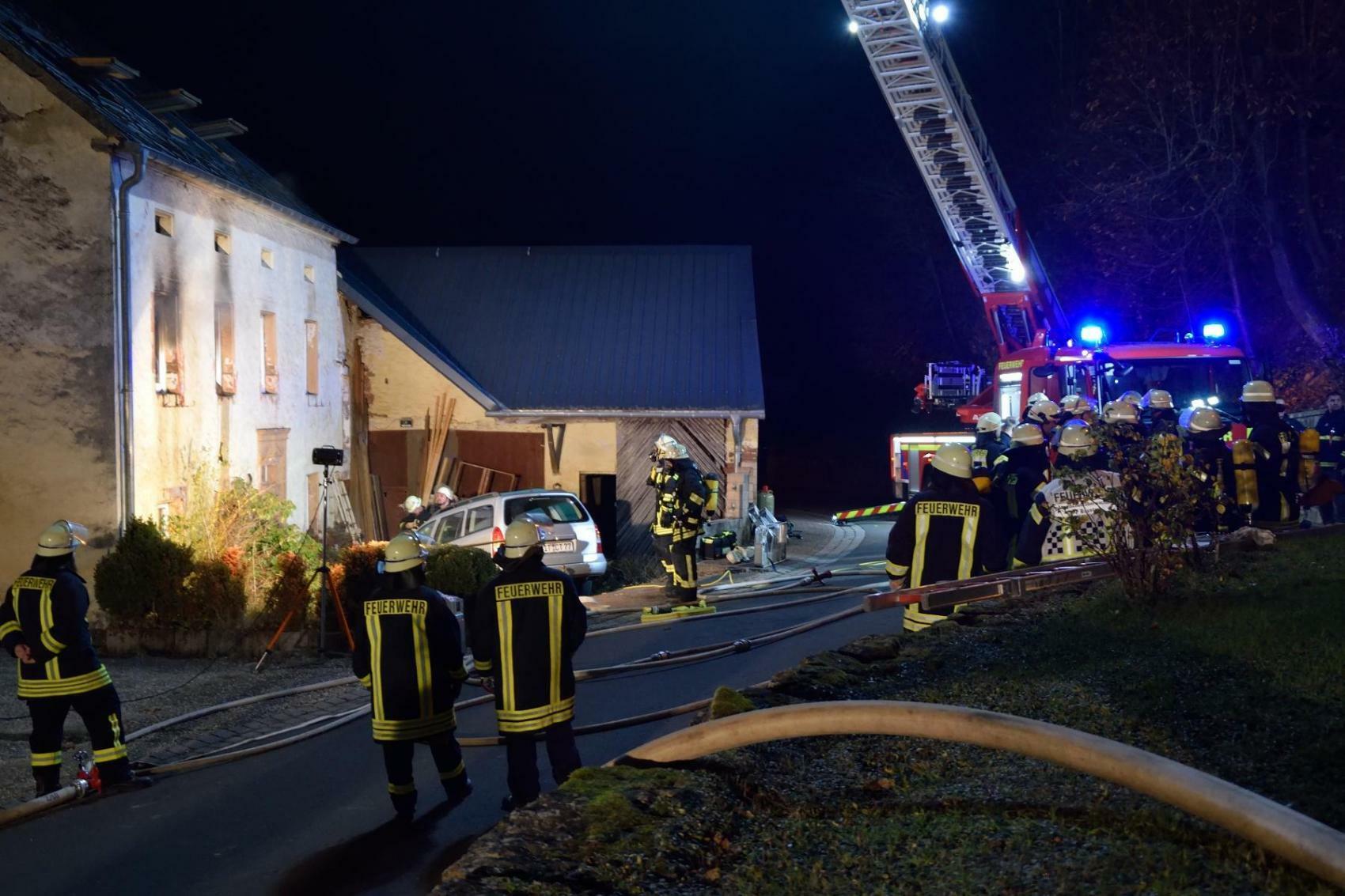 "Wegen dem Gefahrenpotential wurde von der Leitstelle umgehend die höchste Alarmierungsstufe ausgelöst", so Willi Schlöder, stellvertretender Kreisfeuerwehr-Inspekteur im Eifelkreis Bitburg-Prüm. Was war passiert? Am späten Sonntagnachmittag war kurz vor 17 Uhr eine Gasflasche im Wohnbereich eines Gebäudes in Hütterscheid in Brand geraten. Der Hauseigentümer meldete den Brand umgehend der Feuerwehr. Sofort rückten rund 65 Kräfte der Feuerwehren aus Hütterscheid, Baustert, Biersdorf, Bitburg einschließlich der Führungsstaffel Bitburg-Land, der Wehrleitung Bitburg-Land und Kreisfeuerwehr-Inspekteur zum Einsatzort aus. "Wir haben bereits kurz vor Hütterscheid Brandgeruch und dichten Rauch wahrgenommen", so Willi Schlöder. Die Einsatzkräfte drangen unter schwerem Atemschutz zum Brandherd vor und konnten die brennende Gasflasche sowie eine weitere Gasflasche in Sicherheit bringen und löschen. Das erste Stockwerk in dem älteren Gebäude wurde durch den Brand zerstört, das gesamte Gebäude durch die Löscharbeiten unbewohnbar. Wie es zu dem Brand kommen konnte ist ebenso wie die Schadenshöhe noch unklar. Der Hauseigentümer blieb bei dem Feuer unverletzt. Im Einsatz waren neben den genannten Kräften zudem das DRK und die Polizei Bitburg.