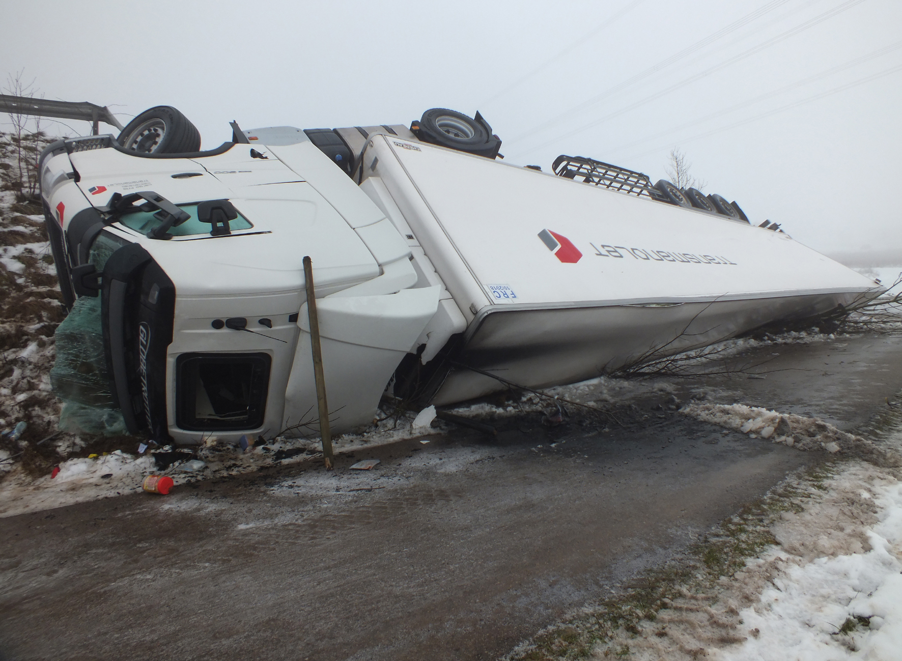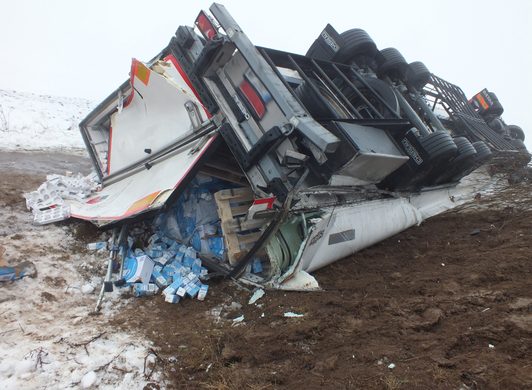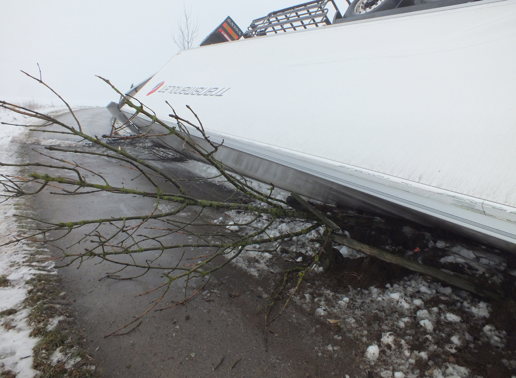 Der schwerste Unfall ereignete sich am Samstag, 23. Januar, gegen 0.30 Uhr auf der B 51 bei Rommersheim in der Eifel. Dort kam ein Sattelzug mit Milch und Pudding beladen in einer Kurve von der vereisten Fahrbahn ab, durchbrach eine Mauer und die Leitplanken und stürzte etwa zehn Meter tief in eine Böschung. Fahrer und Beifahrer konnten sich schwer verletzt aus dem Führerhaus befreien und wurden in ein Krankenhaus gebracht. Die Wucht des Aufpralls war so groß, dass der Tank abriss und sich der Inhalt ins Freie ergoss. Die Feuerwehr sicherte den 40-Tonner ab und steute die Fahrbahn mit Bindemittel aus. Selbst für die erfahrenen Rettungskräfte stellte der Eisregen ein großes Problem dar. Ein Vorwärts kommen war fast unmöglich. An der Einsatzstelle wurde zunächst großflächig mit Salz abgestreut. Ein Feuerwehrmann stürzte schwer und musste mit Knochenbrüchen ebenfalls in ein Krankenhaus. Im Einsatz waren die FEZ Prüm, die Feuerwehren Prüm, Niederprüm, Weinsheim und Gerolstein. Ebenfalls das DRK mit drei Rettungswagen und Notarzt, sowie die Polizei. Fotos/Video: Siko