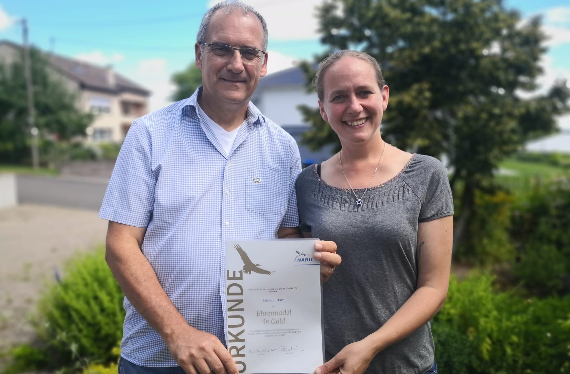 Der NABU-Bundesverband hat Michael Hahn aus Minden mit der Goldenen Ehrennadel für seine langjährigen Verdienste im Naturschutz geehrt. Überreicht wurde die Auszeichnung durch Cosima Lindemann, Landesvorsitzende des NABU Rheinland-Pfalz.