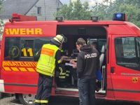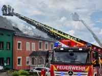 Derweil sind nach und nach zwei Drehleiter aus Trier und Wittlich eingetroffen, um die Löschmaßnahmen zu unterstützen. Hierbei wurde auch das restliche Dach aufgerissen, von wo immer wieder Flammen aufloderten. Im rückwärtigen Bereich mussten die Einsatzkräfte mit Leitern über mehrere Flachdächer hoch, um an die Flammen zu kommen. Auch die Fotovoltaik-Anlage wurde stark in Mitleidenschaft gezogen. Die Einsatzkräfte wurden von Nachbarn mit kalten Getränken versorgt. Die Ortsdurchfahrt wurde für den Verkehr komplett gesperrt. Im Einsatz waren/sind etwa 100 Einsatzkräfte aus der VG Speicher und der VG Trier-Land, zudem die Berufsfeuerwehr Trier und die Feuerwehr Wittlich, das DRK Speicher und Bitburg sowie der DRK OV Bitburg.