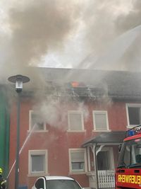 Am Donnerstag, 23.05.2024 gegen 12:50 Uhr kam es in der Katzstraße zu einem Gebäudebrand. Wie die Feuerwehr berichtet, war das Feuer im Dachstuhl ausgebrochen und hatte sich sehr schnell über das Obergeschoss und dem Dach ausgebreitet. Zudem griffen die Flammen auf eine dahinter angrenzende Garage mit Fotovoltaik-Anlage auf dem Dach über. Als die ersten Einsatzkräfte angekommen waren, stand der Dachstuhl lichterloh in Flammen. Umgehend begannen die Löscharbeiten. Mit mehreren Strahlrohren wurde das Feuer von außen bekämpft. Ins Haus konnte niemand mehr gehen. Die Bewohner konnten sich rechtzeitig in Sicherheit bringen. Dennoch wurden fünf Menschen durch Rauchgasvergiftungen verletzt und kamen in umliegende Krankenhäuser.