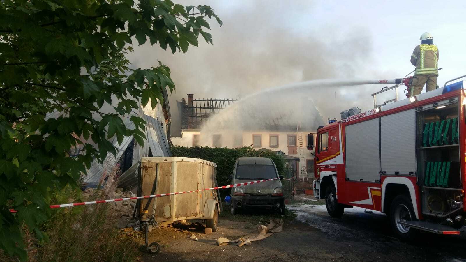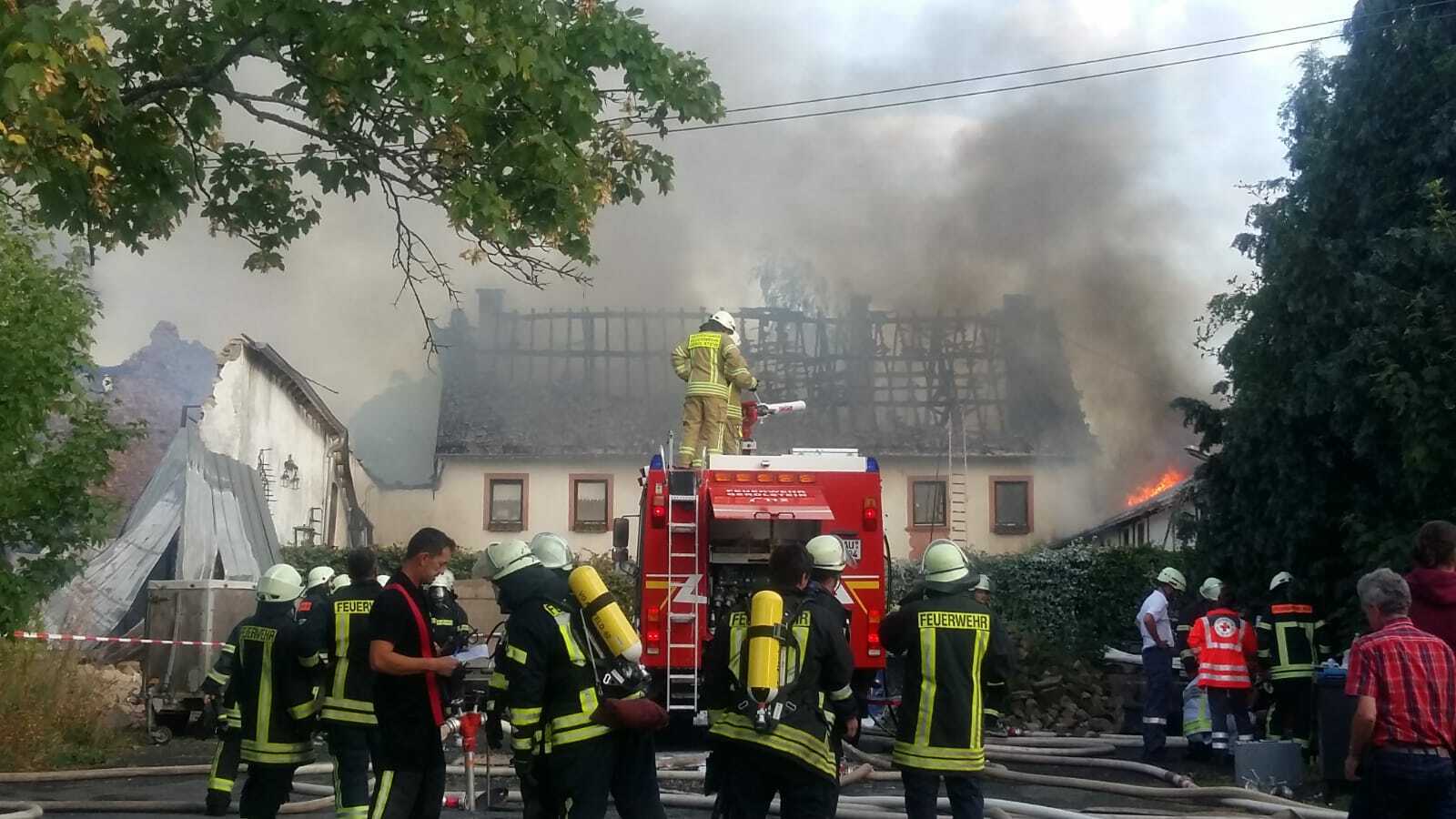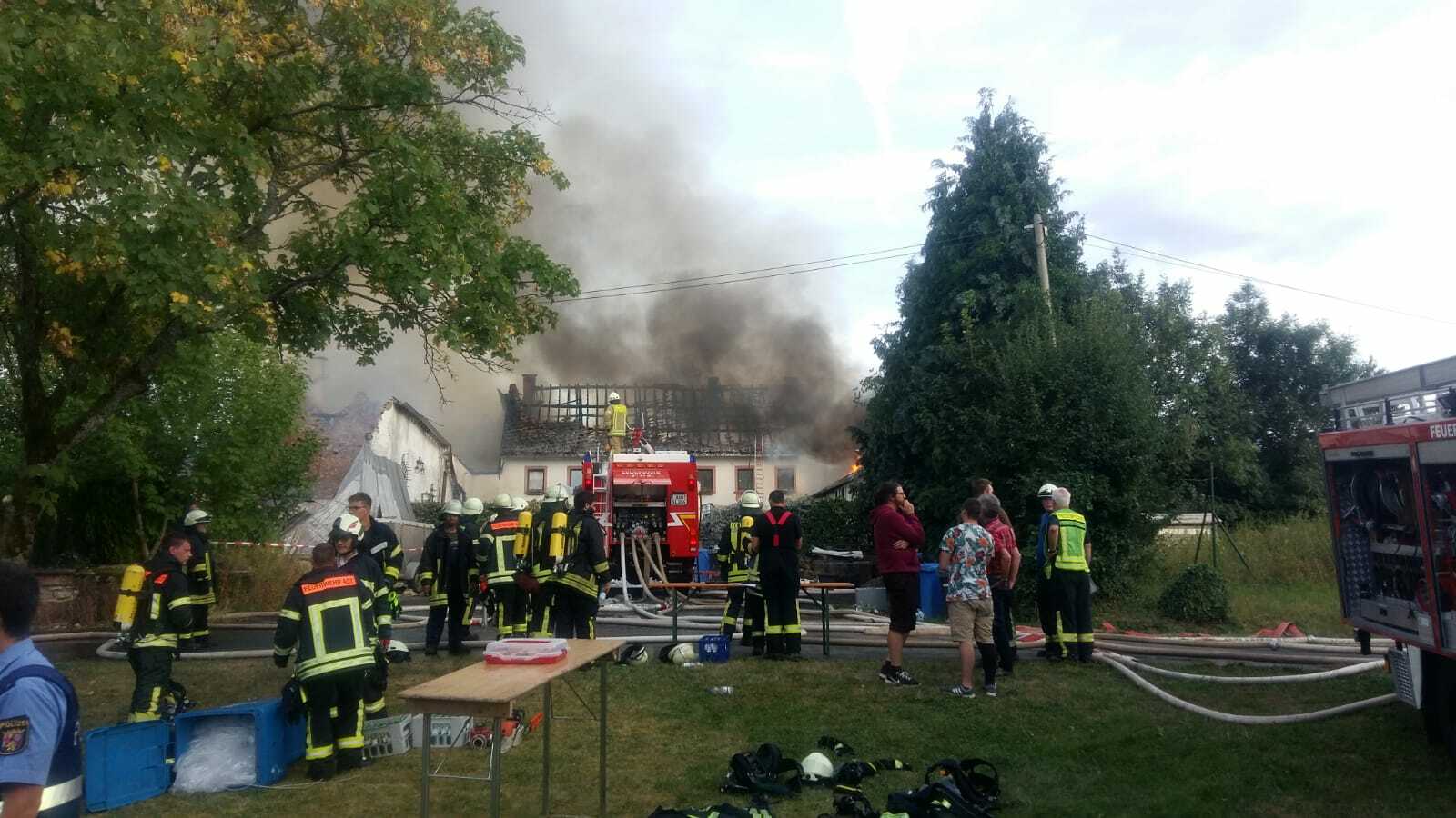In Ellwarth ist gestern Abend ein Wohnhaus mit Stall und Scheune abgebrannt. Das Feuer brach gegen 18 Uhr in der Straße Am Goldberg aus. 130 Feuerwehrleute kämpften gegen die Flammen. Im Einsatz war ein Großaufgebot der Feuerwehren aus Prüm, Schönecken, Bleialf Niederprüm, Wallersheim, Waxweiler, Jünkerath, Kyllburg, Fleringen, Rommersheim, Watzerath, Auw, Biesdorf, Bitburg und Gerolstein. Ein Feuerwehrmann kollabierte aufgrund der großen Hitze.