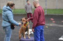 "Und, wer hat die Hundenamen vom letzten Mal behalten?" Die Antworten auf die Frage der Trainerin kommen prompt: "Franz, Fay, Esmi und Esco." Die zehn Häftlinge haben im Gefängnishof einen Kreis gebildet und nehmen Hundeleckerchen entgegen, die Britta Schönhofen verteilt. Dann heißt es für Fay: "Ab in die Mitte." Die Männer sollen die Mischlingshündin abrufen und belohnen, wenn sie kommt. "Ruhig, nett, motivierend und nur einmal", empfiehlt Britta. Fay reagiert schnell, und die Freude darüber ist den Männern anzusehen - sie genießen das direkte Erfolgserlebnis. Dabei lernen sie auch, wie wichtig die richtige Körpersprache des Menschen im Umgang mit den Vierbeinern ist.