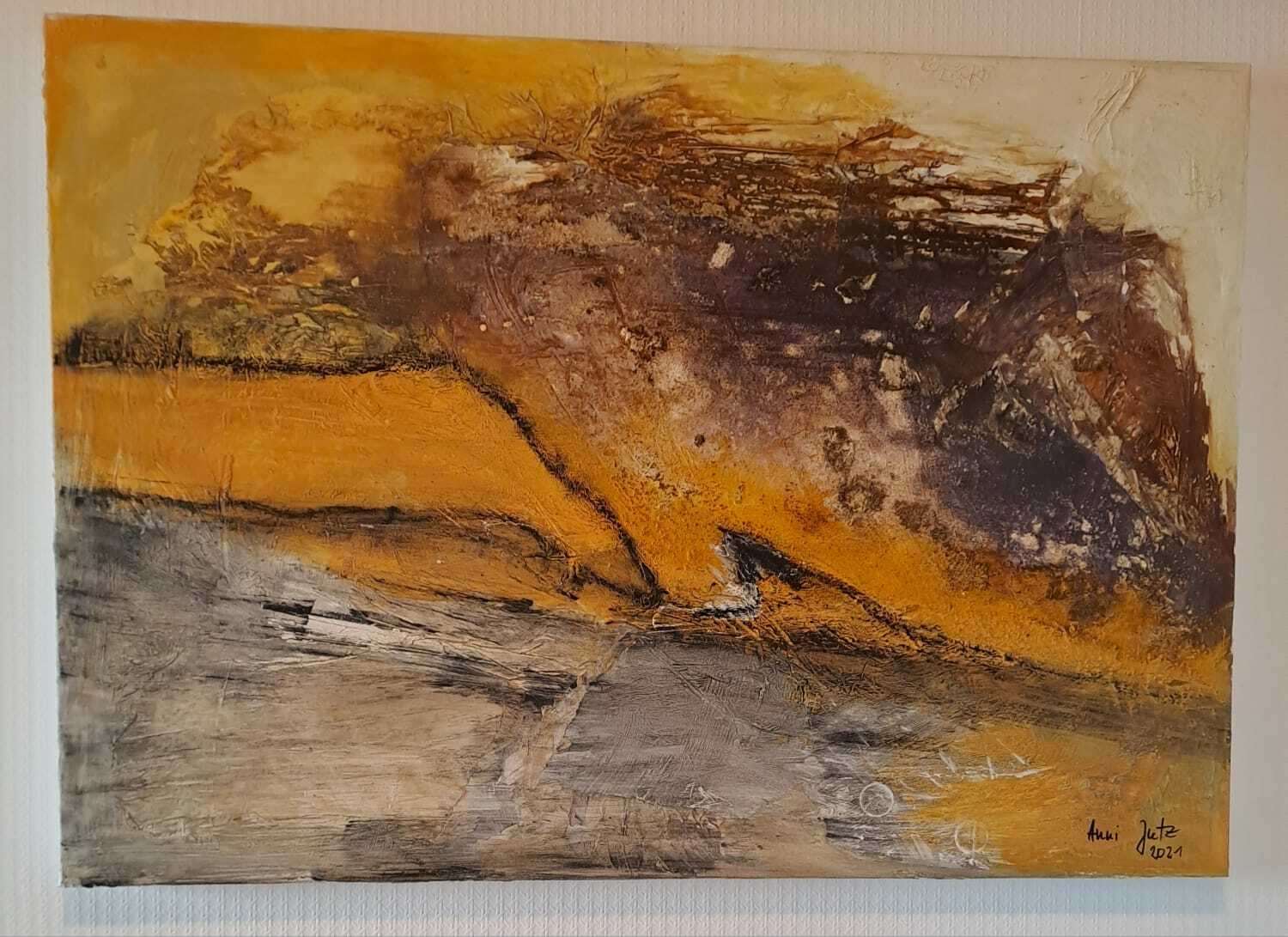 Anni Jutz, Künstlerin mit Leib und Seele aus Bitburg, zaubert durch Kombinationen verschiedener Techniken und Materialien Kompositionen, die Jung und Alt hellauf begeistern. Von Acrylfarben und Papiercollagen über Leinengewebe und Kaffepulver bis hin zu selbsthergestellten Farben aus Pigmenten und Sand aus der Provence - Anni Jutz verbindet ihre Heimat und die Großregion durch heimische Materialien und Motive in ihrer farbenfrohen und lebendigen Kunst.