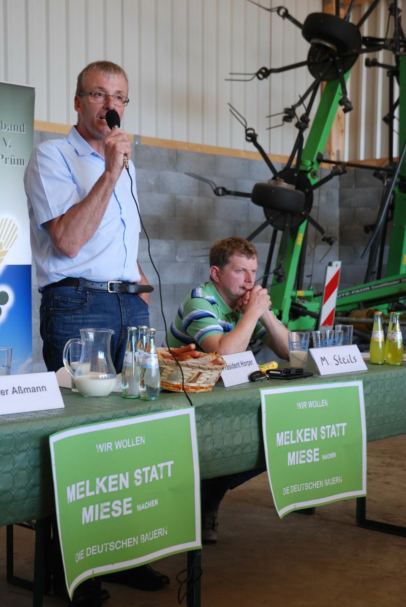Sellerich-Hontheim. "Es ist himmelschreiend", klagt Landwirt Michael Steils aus Sellerich-Hontheim. Auf seinem Betrieb haben sich mehr als 100 Vertreter von Bauernverband, Politik und Landwirtschaft zu einer Kundgebung über die "unerträgliche Situation" der Bauern versammelt. Michael Steils bewirtschaftet einen Hof mit 160 Milchkühen und 140 Hektar Land. Wie Steils geht es vielen: Sie haben massiv investiert, um ihre Betriebe dem Markt, den Auflagen und dem lautstark beschworenen Tierwohl anzupassen und dennoch "können wir nur mit Hilfe der Banken überleben", sagt Steils. Verantwortlich seien die Tiefpreise des Handels und die Haltung des Verbrauchers, der seine Lebensmittel im Discounter kaufe. "Das System fährt uns vor die Wand", so Landesbauernpräsident Michael Horper. Nur noch zehn Prozent ihres Einkommens würden die Deutschen für Nahrung ausgeben. Und was die Landwirte unisono auf die Palme bringt, ist das "falsche Bild", das die Gesellschaft von ihnen als "Tierquäler" und "Umweltverschmutzer" zeichne. Neben dem "System Discount" sieht Horper die Ursache der Krise im russischen Embargo. Zudem sei der Export nach China eingebrochen. Gleichzeitig habe sich das globale Milchangebot erhöht. Die Situation der Bauern vergleicht er mit "Textilarbeiterinnen in Bangladesch". Horper fordert ein Bündel an Maßnahmen: Die Politik müsse neue Märkte erschließen. Der Interventionspreis und die Interventionsmenge für Milch müssten befristet angehoben werden. Um den Landwirten finanziell Luft zu verschaffen, müssten außerdem die Betriebsprämien (Zuschüsse der EU, sofern Landwirte bestimmte Auflagen einhalten) zwei Monate früher, also schon zum 1. November, überwiesen werden. Und die "Superabgabe", die für überproduzierte Milch an Brüssel gezahlt wird, müsse "zurück nach Deutschland". Zusätzliche notwendige Maßnahmen seien eine Entlastung bei den Sozialversicherungsbeiträgen und die Einführung eines steuerlichen Risikoausgleichs. Die Molkereien seien für die Tiefpreise mitverantwortlich, schimpften aufgebrachte Landwirte. Einige äußerten sich für die Wiedereinführung der Milchquote. Dazu Horper: "Mit einer Quote schaffen wir das in einer globalisierten Welt nicht." Horper weiter: "Es ist nicht fünf vor zwölf, es ist schon nach zwölf. Viele Betriebe brechen weg." Tausende Arbeitsplätze seien bedroht. Horper ist bereit, auf die Barrikaden zu gehen. Sein Vorschlag: Mehrere Wochen kollektiv einen Discounter bestreiken. bil Fotos: S.Schönhofen