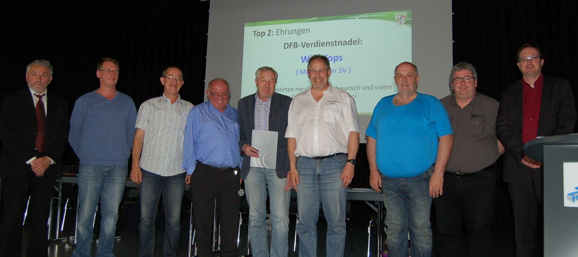 Ein Hoch dem Ehrenamt: Langjährige, sehr engagierte Vereinsmitarbeiter standen im Blickpunkt des Vereinstreffs des Fußballkreises Eifel. Eine besondere Ehre wurde dabei Willi Kops zuteil: Aus den Händen des Kreisvorsitzenden Walfried Hacken erhielt er die Verdienstnadel des Deutschen Fußball-Bundes.