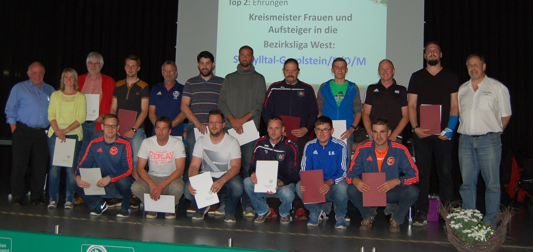 Den Vereinstreff – er löst den bisherigen Kreistag, der künftig in der früheren Form nur noch alle drei Jahre stattfinden soll ab – nutzte der Kreisvorstand auch, um Bilanz zu ziehen und voraus zu blicken. Kreis-Sachbearbeiter Fritz Skambraks ehrte die erfolgreichen Mannschaften der abgelaufenen Saison in den Kreisligen A bis D nicht nur mit Urkunden, sondern fand auch lobende Worte für eine Mannschaft, die gänzlich erfolglos geblieben war: Der SC Stahl II stieg nach 24 Niederlagen in ebenso vielen Partien sang- und klanglos aus der Kreisliga C ab. „Trotzdem Hut ab. Sie haben das durchgezogen, sind nur ein Mal nicht angetreten“, betonte Skambraks. Tragische Helden hatte er mit den Akteuren des FC Kirchweiler II ausgemacht: Zum dritten Mal in Folge wurde dieses Team Meister in der D-Liga, konnte aber wiederum nicht aufsteigen, da die erste Garnitur bereits eine Etage höher vertreten ist: Zwei Teams in der C-Klasse erlaube die Spielordnung des Fußballverbandes nicht, stellte Skambraks klar. Für die neue Saison kündigte er an, dass es keine Relegations-, sondern nur noch Aufstiegsspiele geben wird: „Dadurch wird dann eine Mannschaft mehr aus der höheren Liga absteigen. Die Wahrscheinlichkeit, aufzusteigen, steigt aber auch für die Teams aus der unteren Spielklasse. Insgesamt wollen wir so die Anzahl der Entscheidungsspiele verkürzen.“
