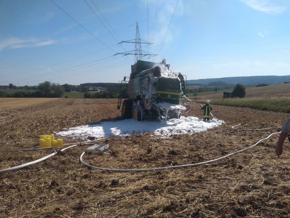 Am Dienstag, 23. Juli, wurde der Polizeiinspektion Bitburg gegen 16.50 Uhr ein brennender Mähdrescher auf einem Feld zwischen Masholder und Oberstedem mitgeteilt.