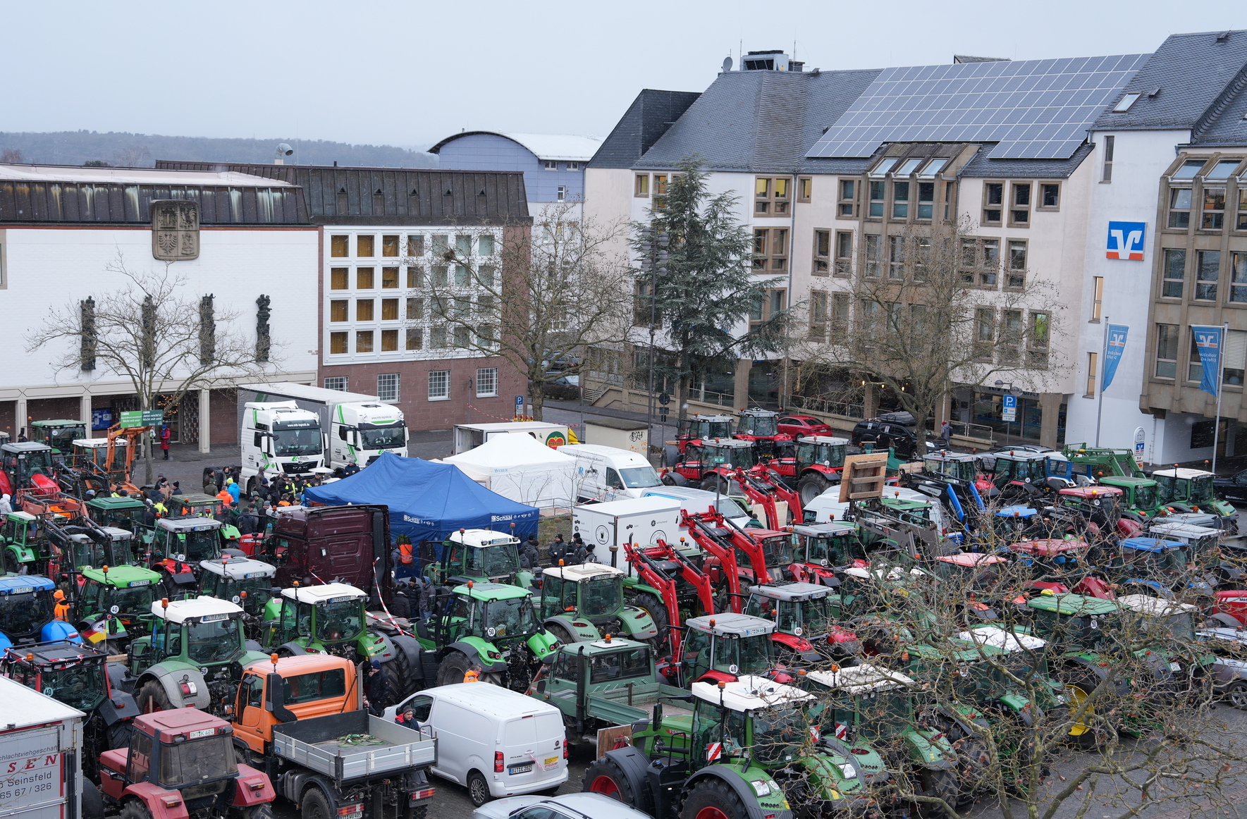 Allein in Bitburg waren es laut Polizeipräsidium Trier über 550 Fahrzeuge. Landesweit sollen mehr als 10.000 Demonstranten an den Protesten teilgenommen haben. Grund des Protestes sind die Pläne der Ampel-Regierung, die Steuervergünstigung für Agrardiesel auslaufen zu lassen. Die Subvention soll bis 2026 schrittweise wegfallen. Bei ihren Protesten erhielten sie durchweg viel Unterstützung von Seiten der Bevölkerung. Auch viele Spediteure, Entsorgungsbetriebe und Lkw-Fahrer schlossen sich dem Protest an, der sich in ihrem Fall gegen eine doppelte CO2-Bepreisung bei Maut plus Diesel wendet.