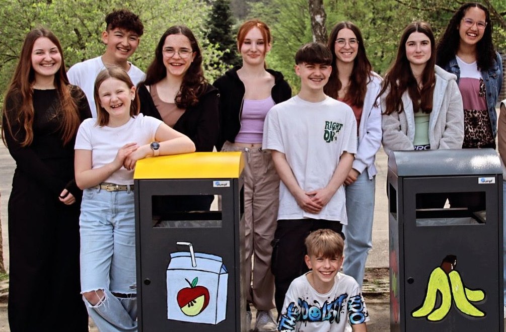 Schülerinnen und Schüler der Realschule plus Bleialf lernten beim Projekt »Kann das weg?« den verantwortungsbewussten Umgang mit Müll und dessen Vermeidung. Unter der Leitung der Erzieherpraktikantin Frau Fiala lernten die Teilnehmenden auch die richtige Trennung und Entsorgung von Müll. Im Rahmen des Projekts wurden neue Mülltonnen auf dem Schulhof augestellt, um andere Schülerinnen und Schüler zu mehr Sauberkeit auf dem Schulfhof zu motivieren.