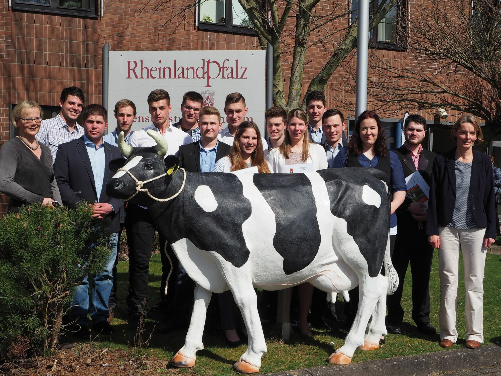 Dienststellenleiterin Anja Stumpe betonte in ihrer Begrüßungsrede, wie wichtig eine fundierte Aus- und Weiterbildung für den landwirtschaftlichen Berufsstand sei. Karl Hahn, Aufsichts- und Dienstleistungsdirektion Trier, wünschte den Absolventen viel Erfolg, um die zukünftigen beruflichen Herausforderungen erfolgreich zu meistern. Juliane Romberg, Leiterin der Abteilung Schule, stellte die wesentlichen Punkte, die den Schulalltag in diesem Wintersemester prägten, in den Vordergrund ihres Semesterrückblicks. Daran anknüpfend blickte Schülersprecher Christoph Daun aus Sicht der Schüler auf die Fachschulzeit zurück. Ergänzend dazu präsentierte Mitschüler Eric Scheuer seinen Film von der Klassenfahrt nach Fontaine (Frankreich). Auf dieser Fahrt besuchten die Schüler nicht nur verschiedene landwirtschaftliche Betriebe, sondern tauschten auch ihre beruflichen Erfahrungen mit französischen Schülern aus. Dieser Blick über den "Tellerrand" prägte auch die weiteren Vorträge. Heike Schifferings, Absolventin der Technikerausbildung am DLR Eifel, schilderte ihre Erfahrungen im Top-Kurs der Andreas Hermes Akademie, den sie als prägend für ihre persönliche Entwicklung und ihre Fähigkeit als Führungskraft empfunden habe. Fabian Reichert, ebenfalls Absolvent des DLR Eifel, ist einen anderen Weg gegangen. Er sammelte in einem großen Milchviehbetrieb in Michigan (USA) während eines sechsmonatigen Praktikums Erfahrungen. Besonders die optimale Betreuung der Tiere in großen Beständen und der Umgang mit Mitarbeitern haben ihn fachlich bzw. als Führungskraft weiter gebracht. Matthis Wahlen stellte seine Hausarbeit "Milchproduktion und Kälberhaltung im Betrieb Marx & Wahlen in Reinsfeld" vor. Dieses Beispiel veranschaulicht den Einsatz moderner Fütterungs- und Melktechnik und zeigt die Entwicklungsfortschritte auch in den heimischen Betrieben.