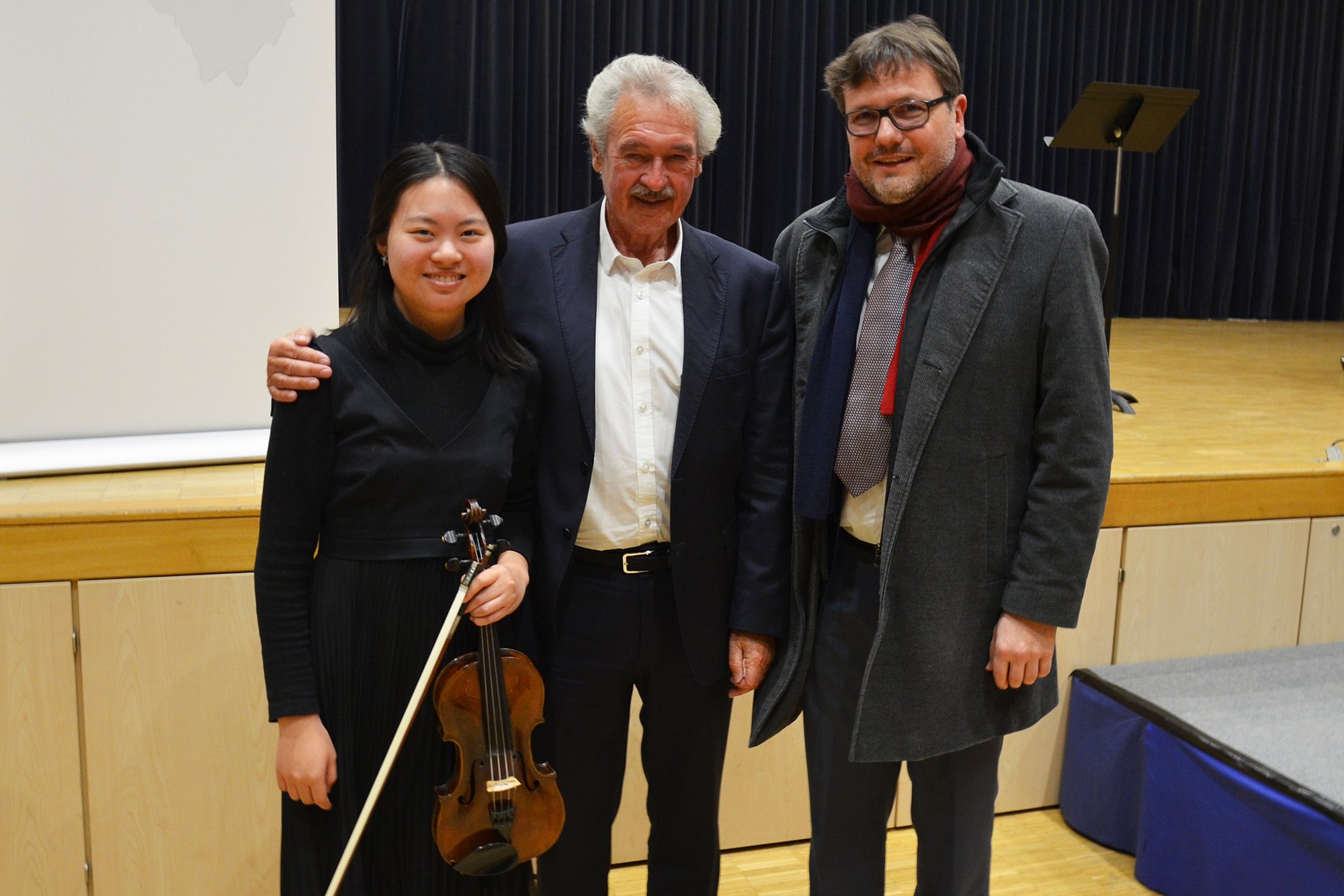 Musikalisch bereichert wurde die Veranstaltung durch Di Wu, Violine, Schülerin des Regino Gymnasiums und Martin Leineweber, Klavier, die das Publikum am Ende des Neujahrsgesprächs 2025 einluden zum gemeinsamen Singen der Europahymne mit vereinfachtem Text von Markus Leineweber.
