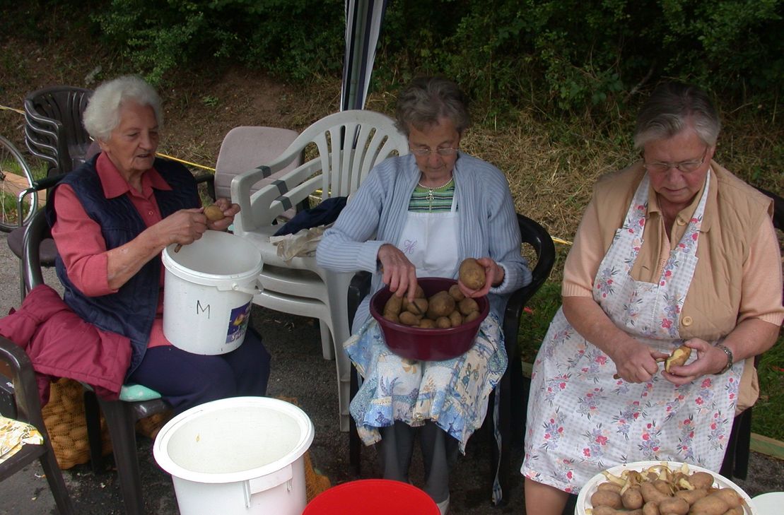 Die gute alte Kittelschürze erfüllte vielerlei Funktionen. Wenn Oma aus dem Kellerregal ein Glas mit Marmelade entnahm, wischte sie kurzerhand mit dem Zipfel ihrer Schierz den angesammelten Staub vom Deckel. In der Schürze, die sie wie einen Sack in der linken Hand verbinden konnte, schleppte sie die Kartoffeln in die Küche. Auch Gläser mit Wurst, Möhren aus der Sandkiste oder Rauchfleisch wurden so aus dem Keller in ihr "Reich", die Küche, transportiert.