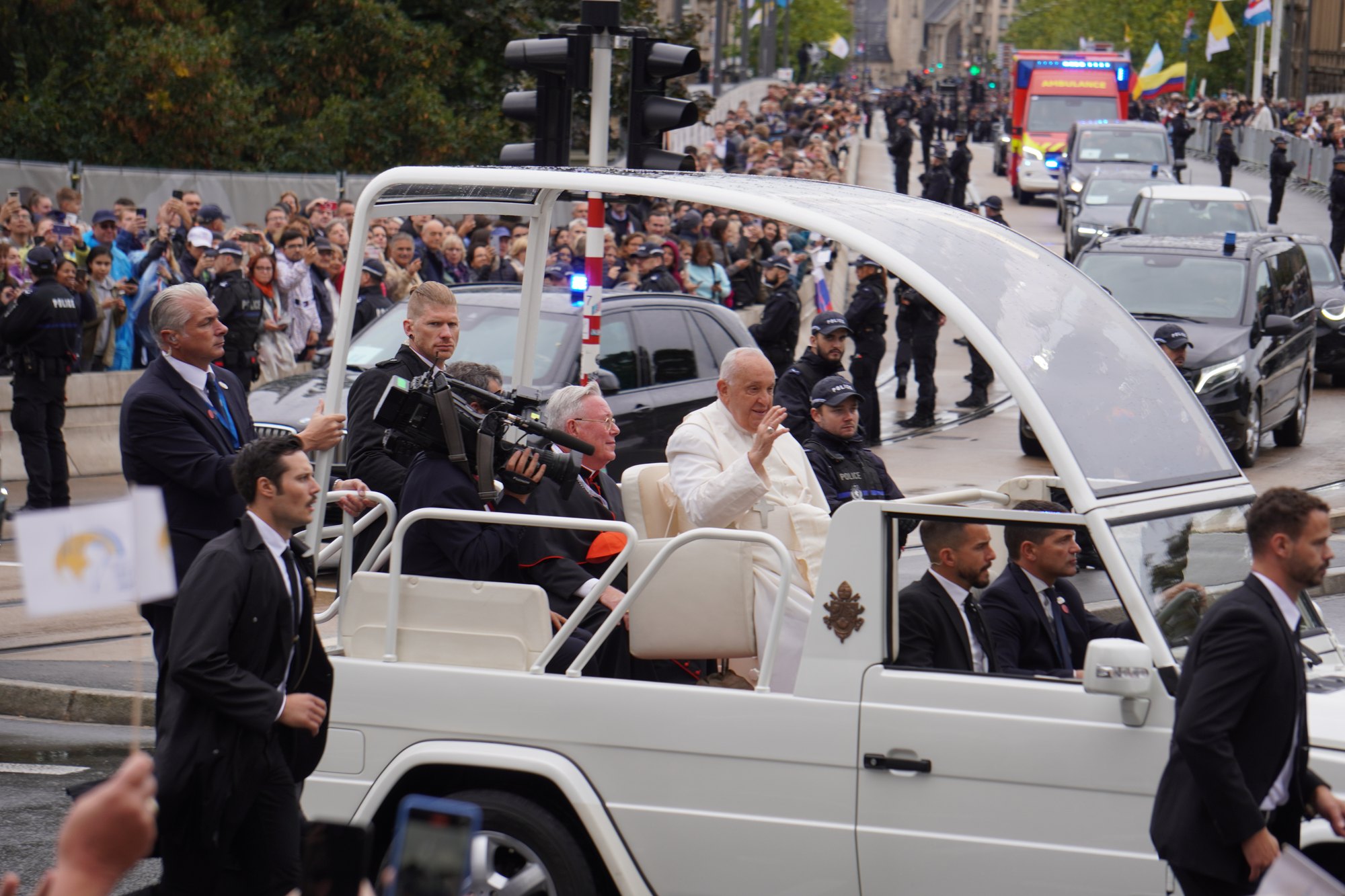 Zum Schluss gab es den päpstlichen Segen für die Menschen in der Kirche und er dankte allen, die etwas vorgetragen haben. Das Kirchenoberhaupt überreichte der Statue der Mutter Gottes „Trösterin der Betrübten“ eine goldene Rose. Die goldene Rose ist eine päpstliche Auszeichnung für katholische Heiligtümer. Beim Verlassen der Kathedrale machte er noch mit Jugendlichen Selfies und segnete die Menschen in den Rollstühlen. Vor der Kirche warteten erneut eine große Schar an Schaulustigen, die trotz strömenden Regen auf Franziskus warteten. Dann fuhr der Papst zum Flughafen und flog um 18.15 Uhr weiter nach Belgien.