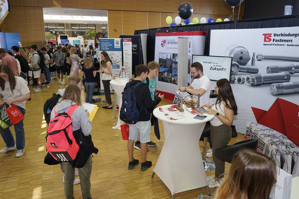 Am Dienstag, 25. Juni, und Mittwoch, 26. Juni, geht die »Job Initiative EIFEL« mit über 65 Ausstellern in die elfte Auflage. In der Stadthalle Bitburg können sich Unternehmen, Schülerinnen und Schüler sowie Jobinteressierte eingehend informieren. Landrat Andreas Kruppert, der erneut die Schirmherrschaft übernommen hat, sagt: »Jahr für Jahr unterstützt diese Veranstaltung Unternehmen und Schulen dabei, miteinander in den Austausch zu kommen.