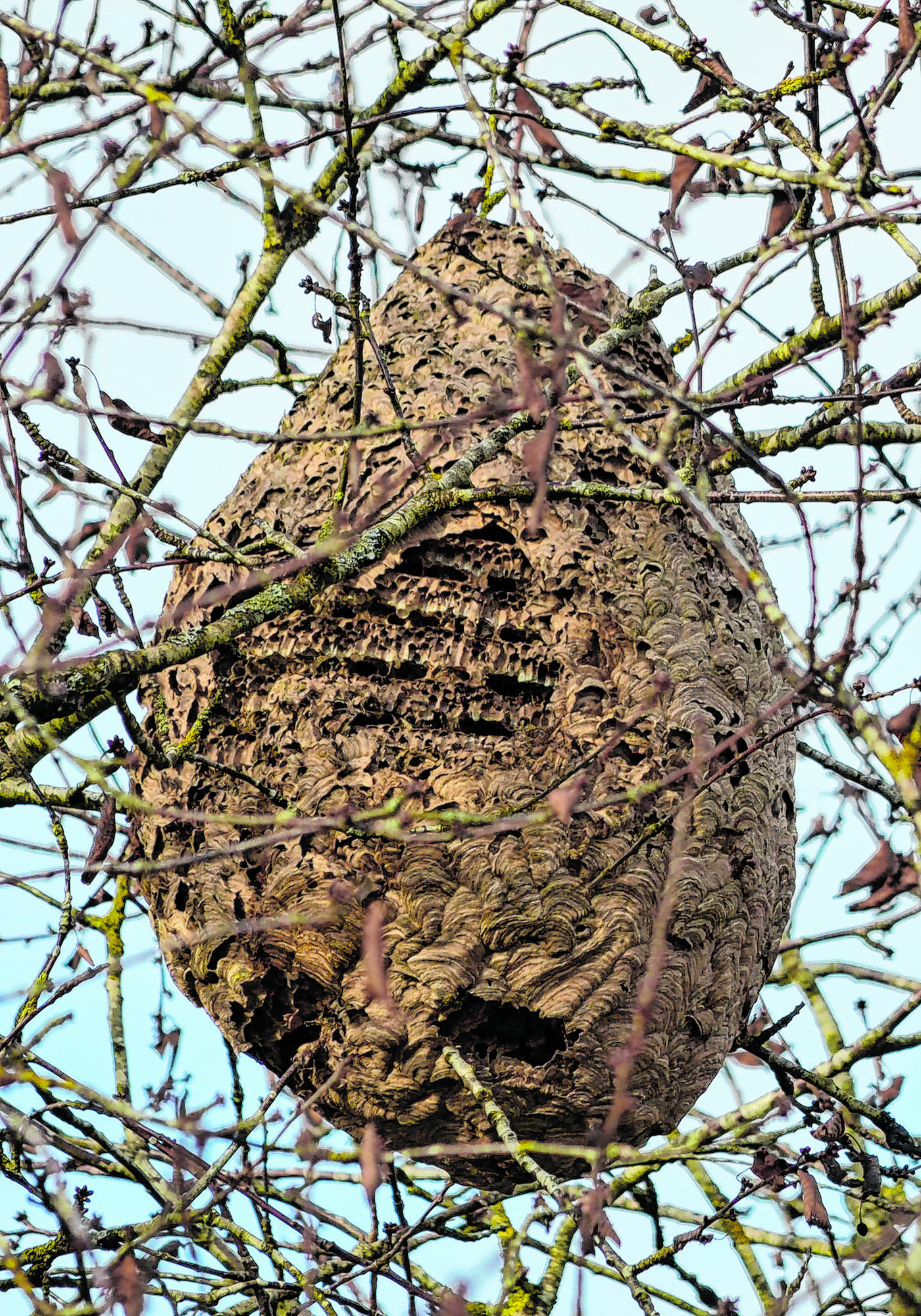 Aktuell hängen die Primärnester noch in 0 bis 5 Meter Höhe, bevorzugt in Hecken und an Häusern, und sind zur Bekämpfung gut erreichbar.
