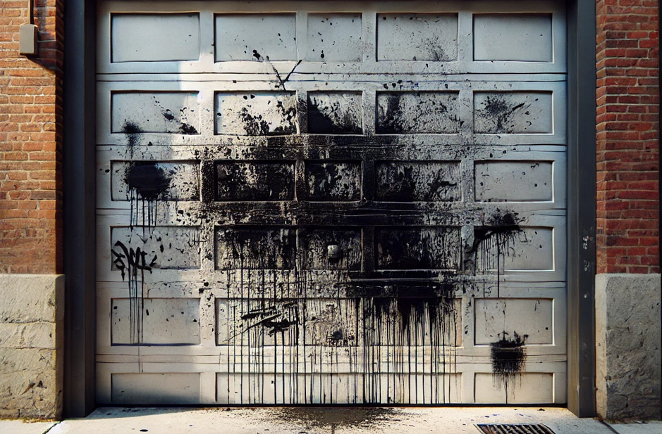 Bislang Unbekannte besprühten ein Garagentor mit schwarzer Farbe.