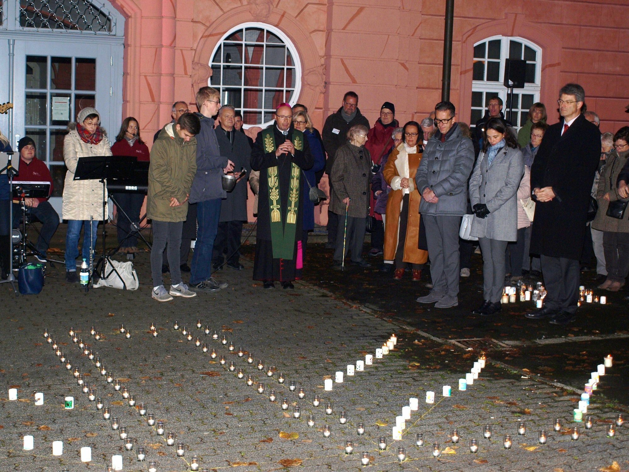 Bischof Stephan Ackermann hat am 12. November zum Abschluss des Jubiläumsjahres "70 Jahre Caritasverband Westeifel e. V." einen Gottesdienst in der Basilika in Prüm gefeiert. Mit der anschließenden Kerzen-Aktion "Eine Million Sterne" setzte der Caritasverband ein leuchtendes Zeichen für eine solidarische Gesellschaft und eine gerechtere Welt. In seiner Predigt verwies Bischof Ackermann auf das Endzeitliche im Lesungstext aus dem Buch Maleachi und im Sonntagsevangelium nach Lukas, in denen viel von Untergang die Rede sei. Jesus gestehe ein, dass es ein Ende von Zeit, Welt und Geschichte geben werde. "Aber der Untergang ist nicht das letzte Wort. Dann wird Christus da sein, er ist das Ende und das Ziel, auf das wir zugehen, er wird uns empfangen", sagte der Bischof. Aber für viele Menschen sei ein Ende oft mitten im Leben da, zeige sich täglich oder geschehe in Etappen und bedeute Hoffnungslosigkeit. Hinzu komme die ungewisse Frage nach der Gerechtigkeit, die der Maleachi-Text aufwerfe. "Hier beginnt die Aufgabe der Caritas, die sich an die Seite der Bedürftigen stellt, die Hilfe brauchen und nach neuen Perspektiven fragen", sagte Ackermann. "Ihr Auftrag liegt sowohl in der individuellen Hilfe als auch in ihrer verbandlichen Organisation, mit der die Caritas Sensibilität für Ungerechtigkeiten weckt und die Finger in die Wunden legt. Damit ist sie Lobbyistin im besten Sinne - um zu helfen und Ungerechtigkeiten zu vermeiden und abzuschaffen, im Hier und Heute", sagte der Bischof. Er dankte den vielen ehrenamtlichen und hauptamtlichen Helferinnen und Helfern, die in sieben Jahrzehnten an der Seite der hilfebedürftigen Menschen in der Westeifel gestanden und sich für sie eingesetzt hätten. Den Gottesdienst zum Abschluss des Jubiläumsjahres feierten auch der Vorsitzende des Diözesan-Caritasverbandes, Prälat Franz Josef Gebert und Pfarrverwalter Pater Egon Kettern mit; es assistierten die Diakone Eduard Schmitz (Prüm) und Andreas Maria Baumeister (Manderscheid). Musikalisch gestaltet wurde der Gottesdienst von der Eifeler Sacro-Pop-Band "Spirit". Im Anschluss an den Gottesdienst segnete Bischof Ackermann auf dem angrenzenden Schulhof des Regino-Gymnasiums die Kerzen der Aktion "Eine Million Sterne". Sie ist eine Solidaritätsaktion des internationalen Caritas-Netzwerkes und verwandelt zu einem verabredeten Termin in vielen deutschen Städten öffentliche Plätze in ein Lichtermeer. Die Aktion soll ein Aufruf sein für Solidarität und Gerechtigkeit sowie für die Arbeit und Projekte der Caritas. In Prüm stand sie unter dem Motto "Caritas gegen Altersarmut" und wurde vom Westeifel-Vorstandsvorsitzenden Friedbert Wißkirchen und von Caritasdirektor Winfried Wülferath eröffnet. Die gesegneten Kerzen wurden anschließend über die Caritas-Sozialstationen und Pfarreien an kranke Menschen als "kleiner Lichtblick" verteilt. Informationen zur Arbeit des Caritasverbandes Westeifel e. V. gibt es im Internet unter www.caritas-westeifel.de.